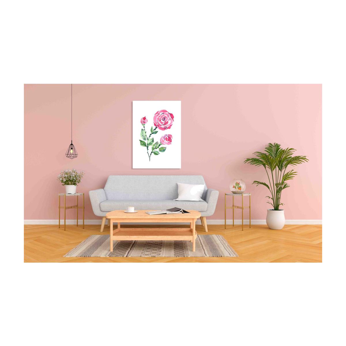 I love this piece because it offers a fresh, vibrant pop of colour with its pink roses, making it ideal for adding a cheerful focal point to a living room or bedroom. The size is quite substantial, so it works well above a sofa or a sizeable blank wall to create impact. It pairs beautifully with softer colour palettes, especially blushes, whites, and greys, but it can also stand out against darker or more muted backgrounds. For styling tips, consider keeping other accessories minimal to let the artwork shine, and complement it with floral or botanical accents in cushions or accessories for a cohesive look. Its bright, uplifting vibe makes it versatile for various interior styles-from modern minimalism to shabby chic.