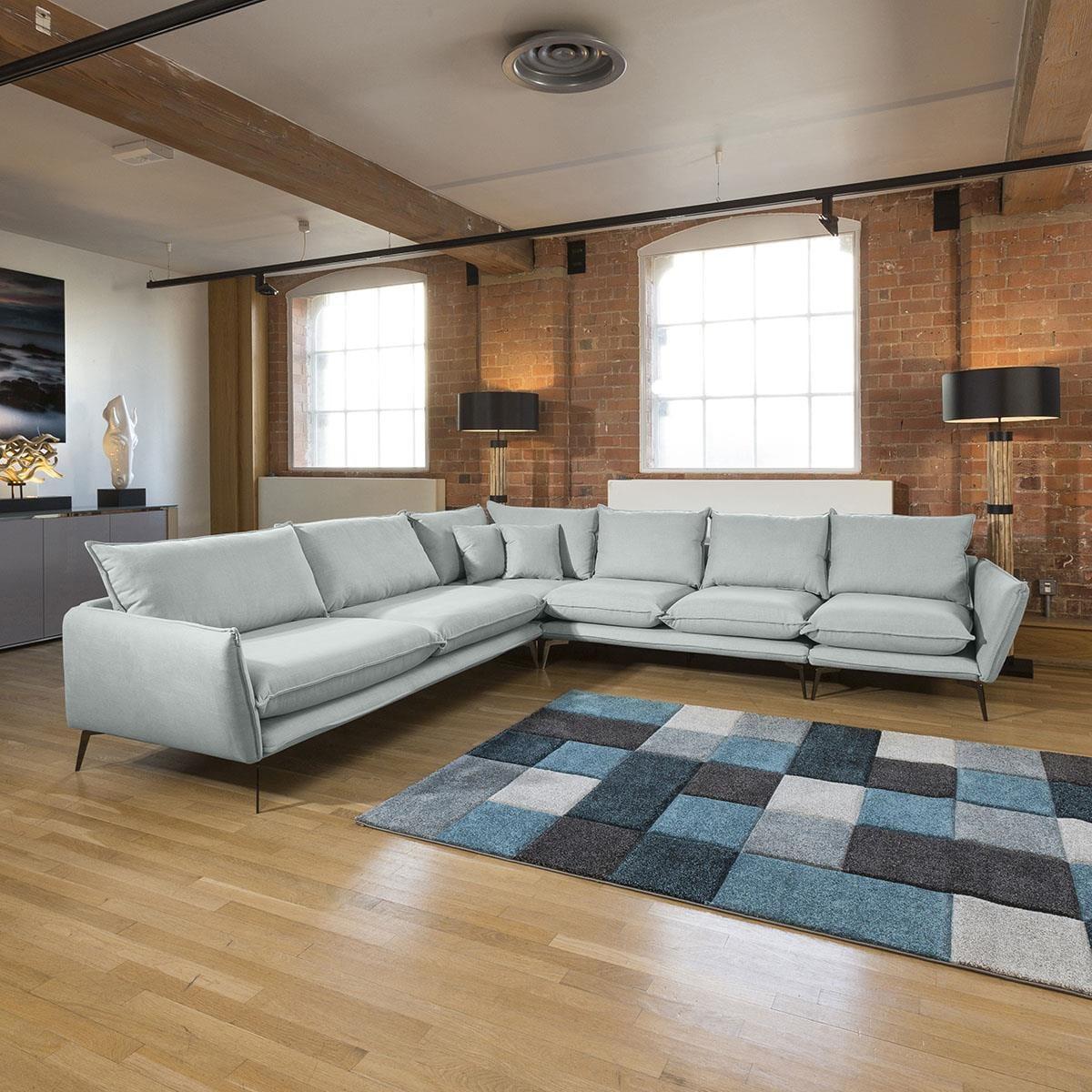 I love this large corner sofa for its versatility and clean, modern lines. Its generous size makes it ideal for open-plan living spaces or family rooms where comfort and seating capacity are priorities. The many fabric options allow it to work well in both contemporary and more classic interiors, making it a very adaptable piece. To style this sofa effectively, consider adding cushions in contrasting textures or colours to create visual interest, and place a statement rug underneath to anchor the space. It’s also worth pairing it with sleek, minimal-sided tables or layered lighting to keep the look balanced and inviting, especially in larger rooms.