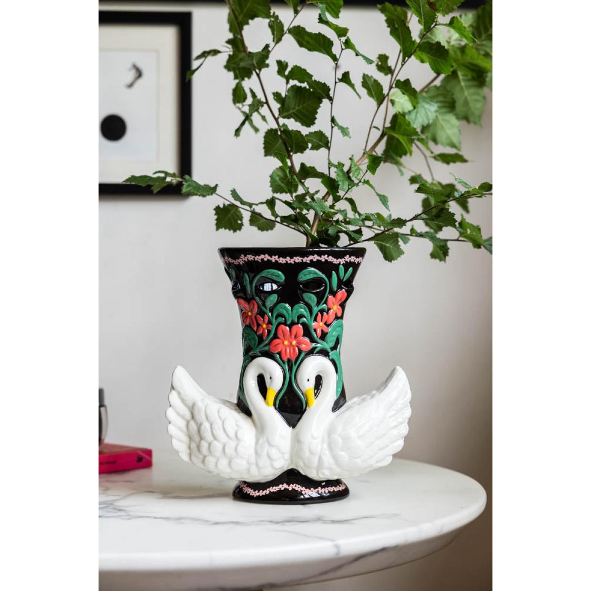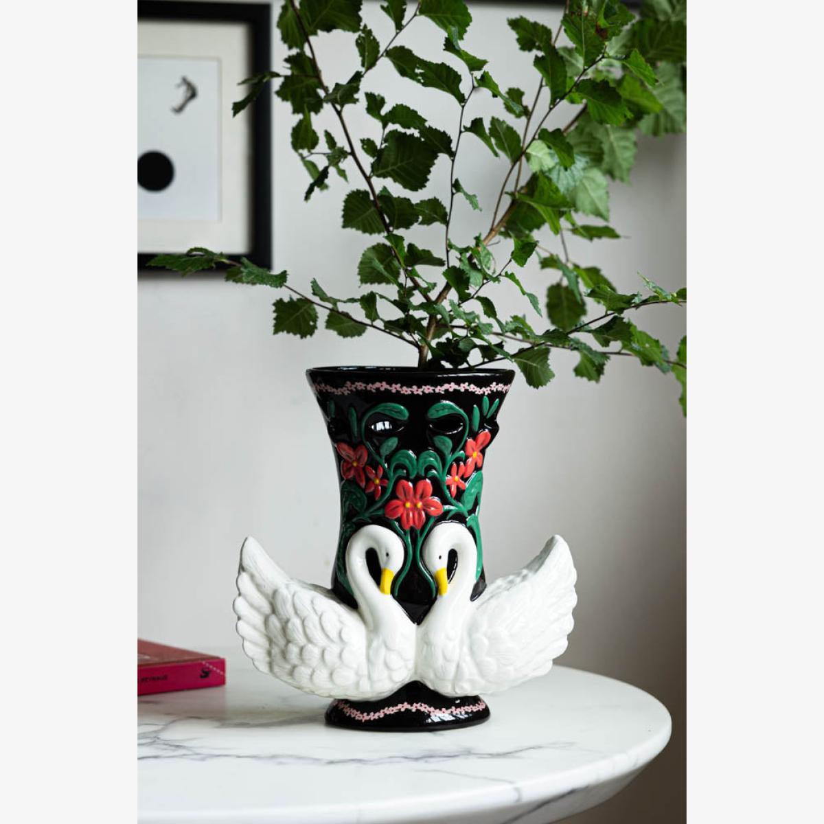 There’s something truly magical about this vase – we love the folksy vibe, and the handcrafted look and feel of the red flowers and trailing greenery. It’s the kind of piece you might find in your nana’s house, which makes it all the more special, in our opinion – we are suckers for a little bit of grandmillennial chic! Whether you rock a rustic, maximalist vibe or prefer your interiors a little more modern and muted, this works a treat – although that said, the juxtaposition of this vintage-style piece in a super-modern setting is what creates the magic. You know what we say – your home, your rules, so do what you love and you can’t go far wrong. Styled with an abundance of gorgeous blooms or left au naturel, ultimately, the question Team RSG asked itself was this: Why have one swan when you can have two? The more the merrier, we say – every time. - Beautiful Swan Vase - Material: Ceramic - Measures: H32cm x D18.5cm x L29.5cm
