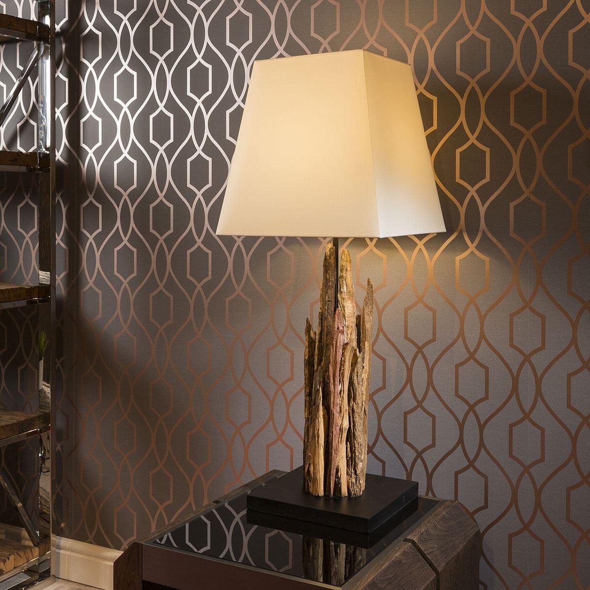 Unique Modern Driftwood table Lamp with Tappered Square Cream Shade. A Truly Stunning & Unique Driftwood Design with Elegant Oversize Cream fabric shade. Made by Europe's top lighting manufacturer, please do not confuse with cheap Asian copies. Please note this is a handmade unique driftwood product, each one will be different. This lamp requires 1 x bulb (not supplied) W40cm D40cm H104cm E27 bulb required Modern design