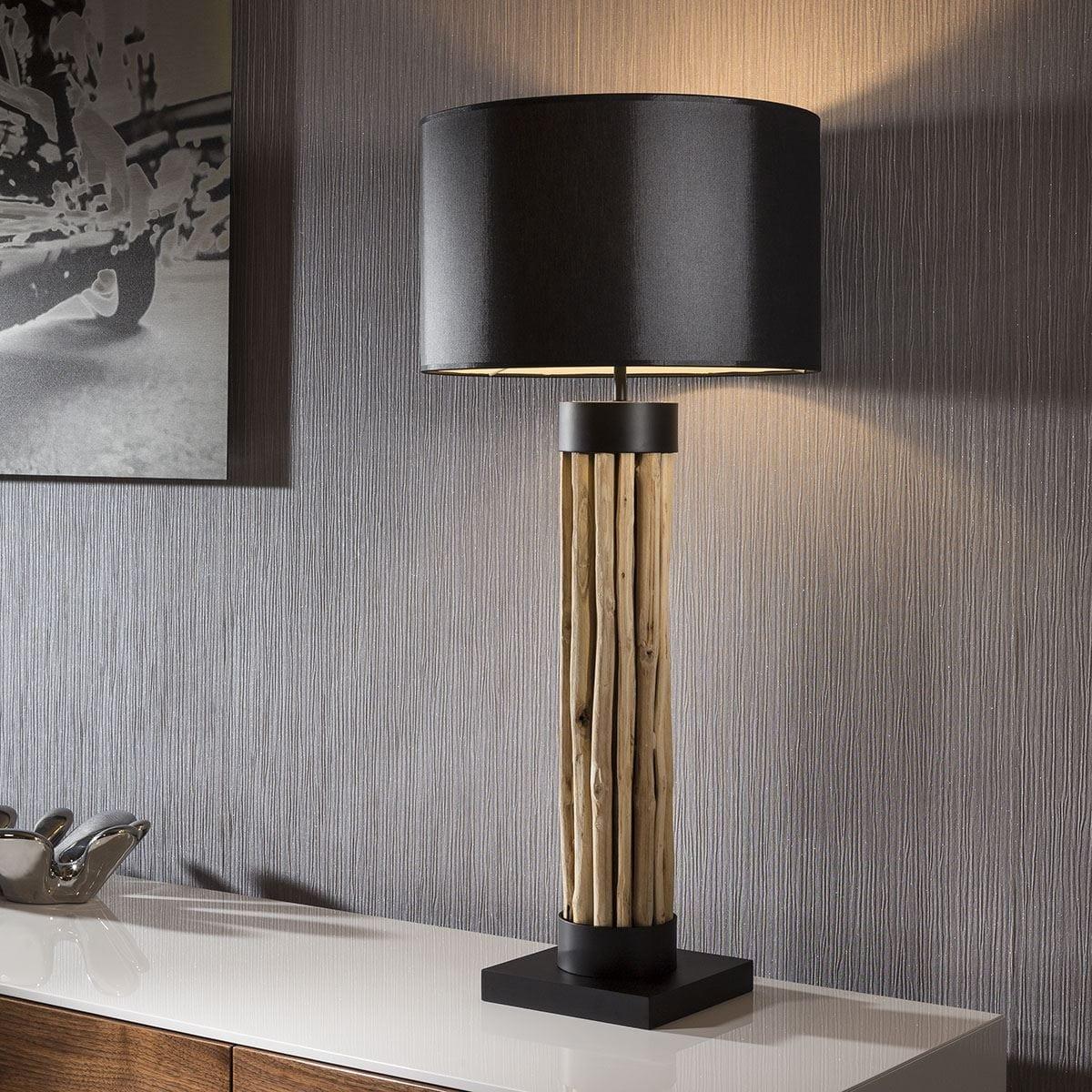 Unique Modern Driftwood Table Lamp with Black Shade. A Truly Stunning & Unique Driftwood Design with Elegant Oversize Black fabric shade. Made by Europe's top lighting manufacturer, please do not confuse with cheap Asian copies. This lamp requires 1 x E27 bulb (not supplied) W45cm D45cm H100cm E27 bulb required Modern design