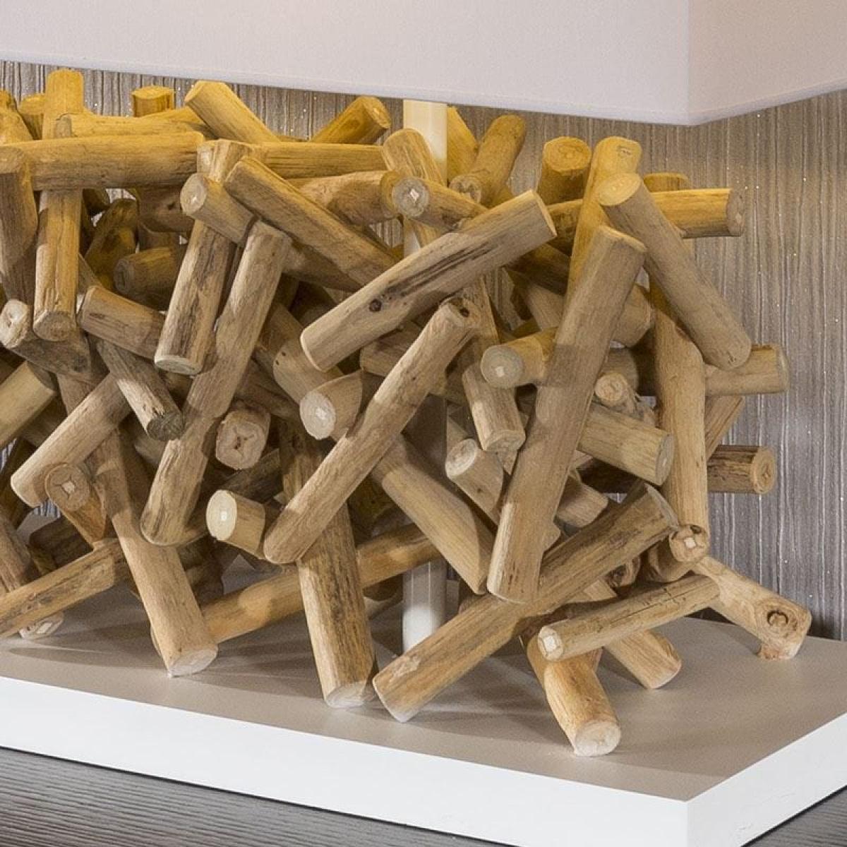 Unique Modern Driftwood Table Lamp. A Truly Stunning & Unique Driftwood Design with Elegant white cotton shade. All mounted on a white wooden base. Made by Europe's top lighting manufacturer, please do not confuse with cheap Asian copies. Please note this is a handmade unique driftwood product, each one will be different. This lamp requires 2 x E27 bulbs (not supplied). W80cm D20cm H50cm 2 E27 bulbs required Modern design
