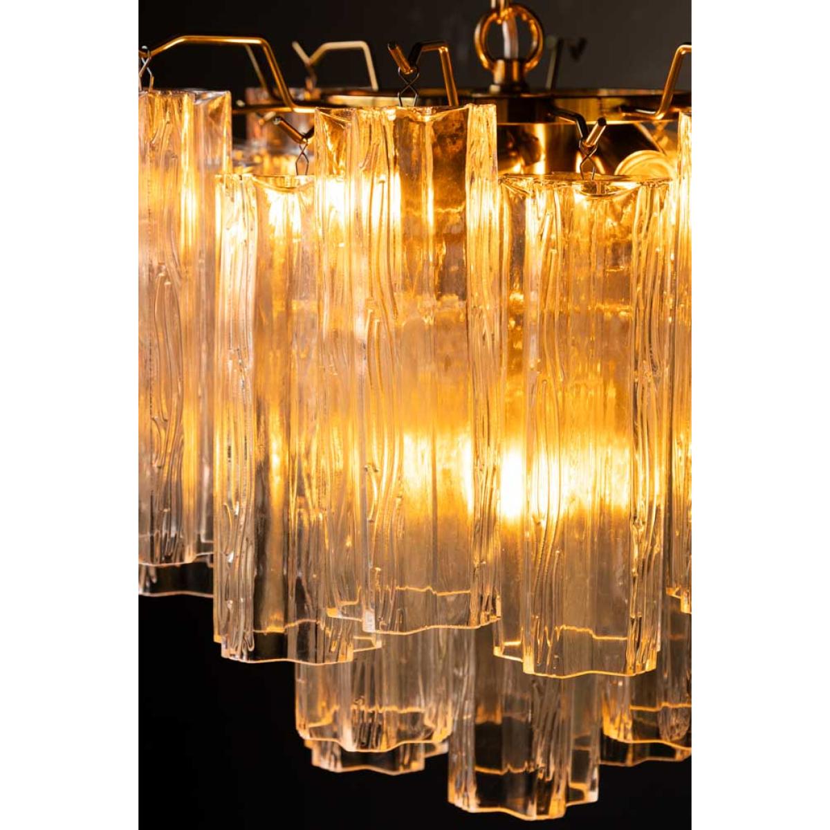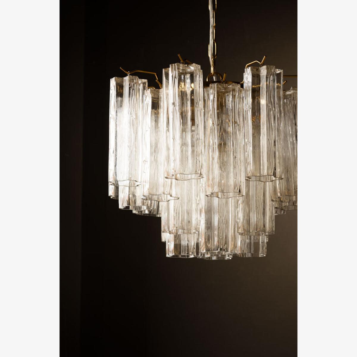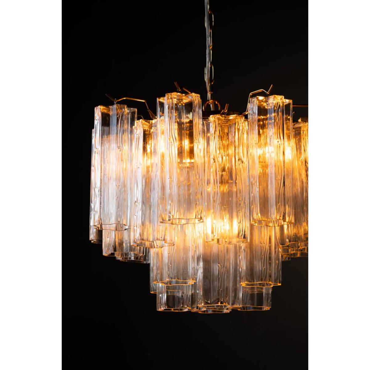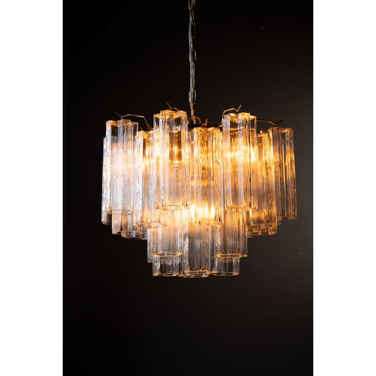 <!--td --> Lighting fiends rejoice! This statement chandelier makes the perfect addition to your home and adds a touch of sophisticated drama to your surroundings. Crafted from scalloped glass flutes designed in delicate waves, and anchored by a sturdy yet unobtrusive chrome light fitting, you’ll be captivated by the way the light plays prettily through the flutes when this is illuminated – the waved design creates a beautiful variation of tonal colours that are mesmerising. Hang from the hallway ceiling, or style in the living room or bedroom to create a talking point for all the right reasons! You know what we say here at RSG – your home, your rules. Whether you tend towards Scandi minimalism or a maximalist riot of colour, this is versatile to fit beautifully wherever in your home you choose to display it. - Material: Metal and glass - Measures: H40.5cm x W45cm x D45cm - Bulb required: 7 / E26 / 9W maximum (please note bulb not included) - Electrician required? Yes – this needs expert installation - IP Rating: IP20 - Lighting Certification UK:CE