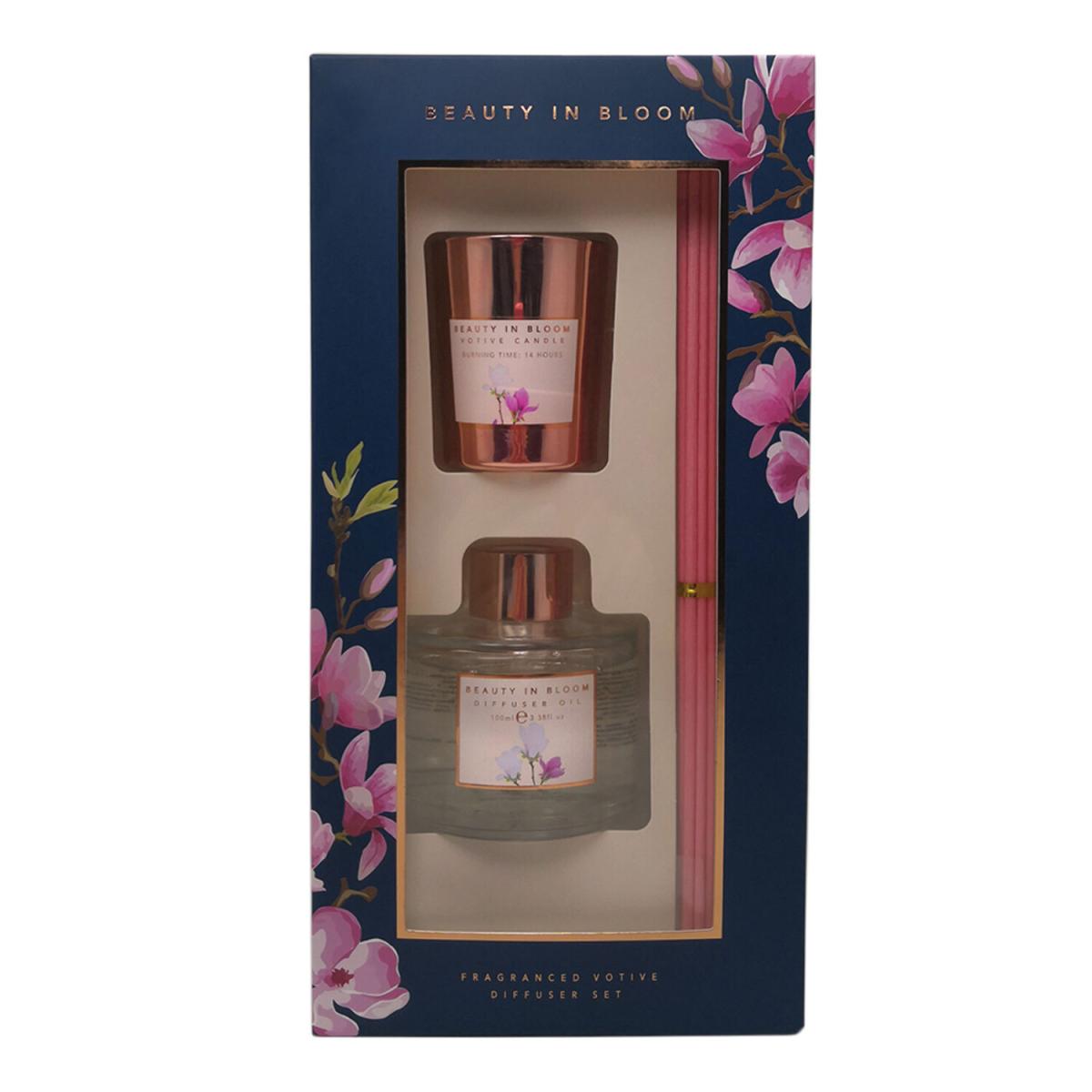 I really like the bloom set because of its versatile design and fresh aesthetic, making it suitable for a variety of interiors from cosy country homes to sleek modern spaces. Its floral-themed packaging adds a subtle touch of colour and charm without being overpowering. Practical styling tips include placing the diffuser on a side table or bathroom shelf to introduce a calming scent, while the candle can serve as a lovely centrepiece on a coffee table or bedside unit. The set’s clean, understated look works well with natural textures like wood and linen, creating an inviting atmosphere that’s both functional and decorative.