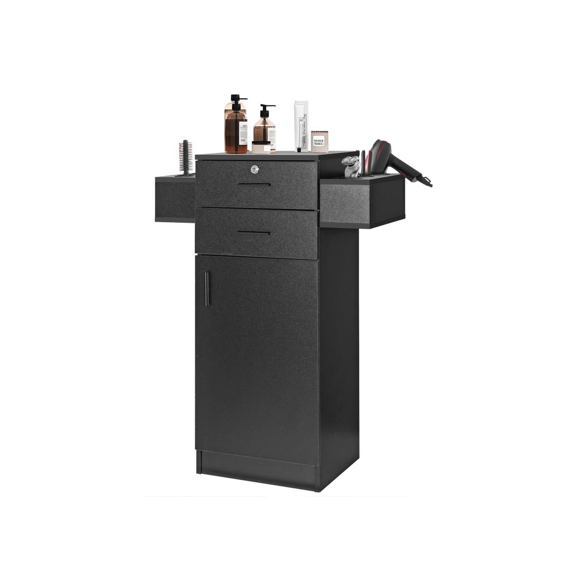 This salon storage cabinet can keep all tools within your reach and keep them tidy. To offer ample storage, it features 1 wide countertop, 2 large drawers, 2 side shelves with 6 holders and 1 door cabinet with easy-to-grip handle. And one of the drawer is designed with safety lock for more security. After locked, it can be only opened with the provided keys. What's more, thanks to its reasonable size and practical design, this storage cabinet is suitable for salon, beauty, spa, tattoo and pedicure. Additionally, anti-toppling device helps to firmly fix it into the wall. Stable base keep it stable and sturdy. With scratch-resistant and waterproof surface, it's easy to maintain.