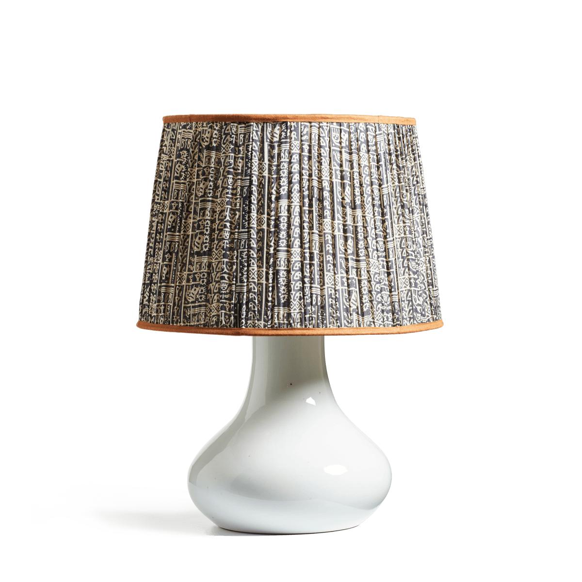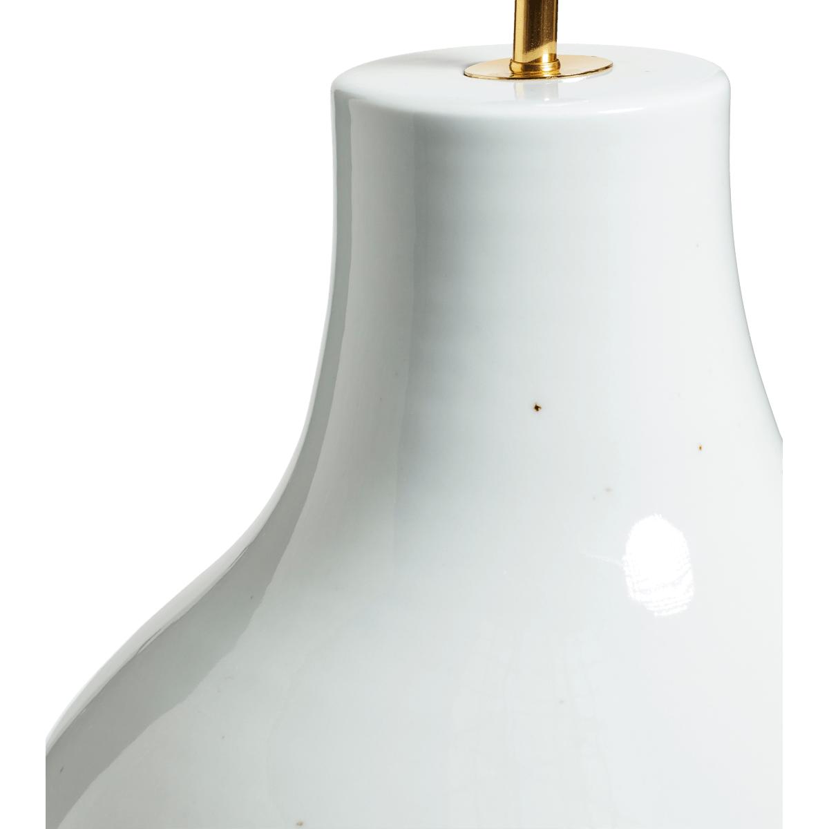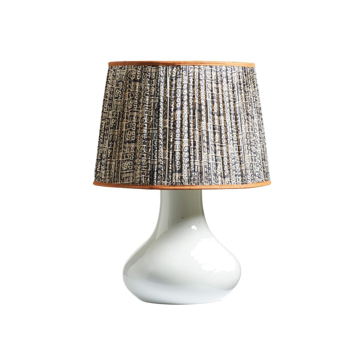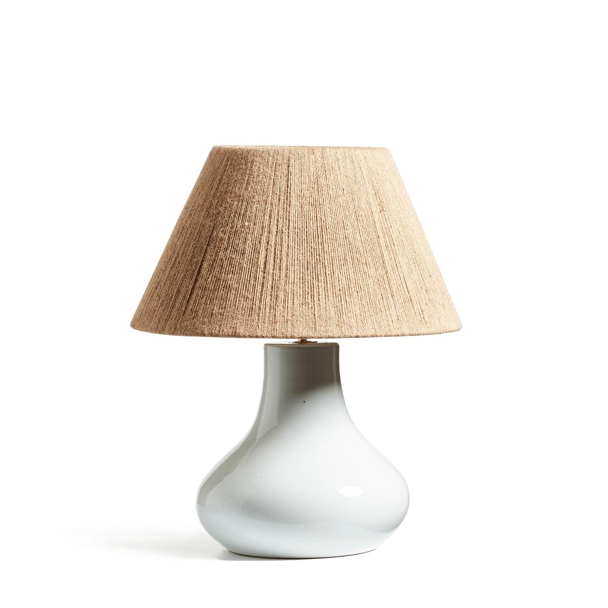 The Beauvoir’s form is pleasingly curvaceous, extending upwards into a slender neck. Its shape is accentuated by a glossy finish on its off-white body, which shines pleasingly when the lamp is switched on. Please note that the handmade base is intentionally speckled and each piece will feature its own unique markings.