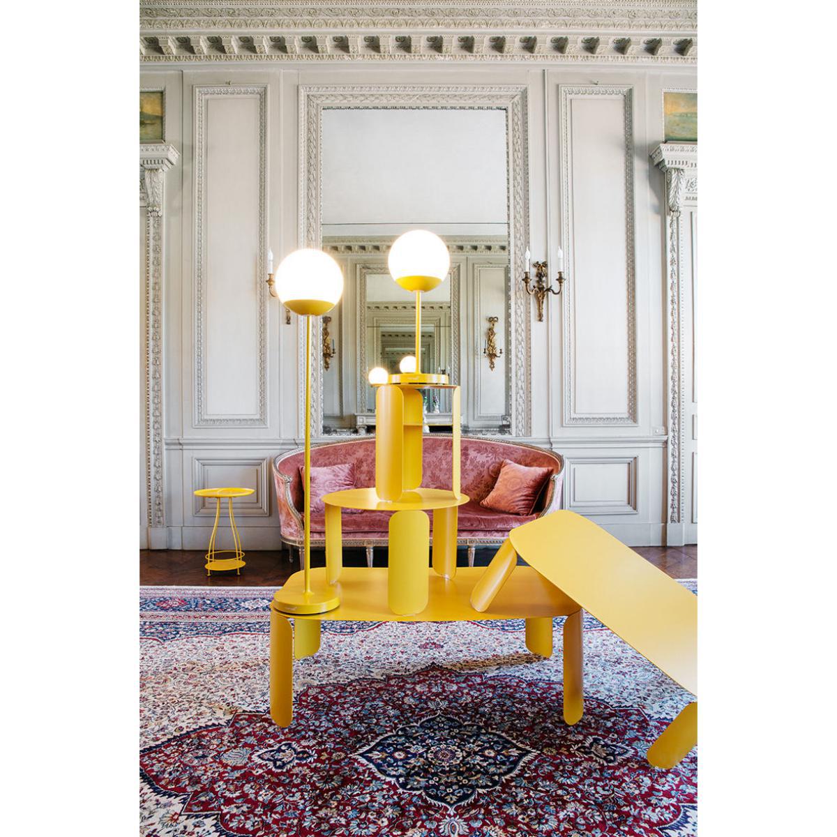 Refined and ethereal, the Bebop coffee table collection stands out for its diversity, stability and striking design. Available in three different shapes (round, square and rectangular), several sizes and multiple vibrant colours, the Bebop range meets all your needs! They can be used as coffee tables, bedside tables or pedestal tables, and can be easily moved around and positioned wherever you like. They fit in just as well indoors in your living room, bedroom or entrance hall, as outdoors on your balcony or in the garden. This square-topped coffee table is a superb illustration of one of Fermob's key themes: simplicity. Tristan Lohner, a designer who’s in tune with Fermob's values, has designed a stunning table thanks to the skill of Fermob’s technicians: the top is supported almost invisibly, as if by magic, on feet that reveal the purity of a simple form. These Bebop tables available in different heights can be arranged separately, or used together to create a beautiful graphic composition. To save space, the tables interlock.