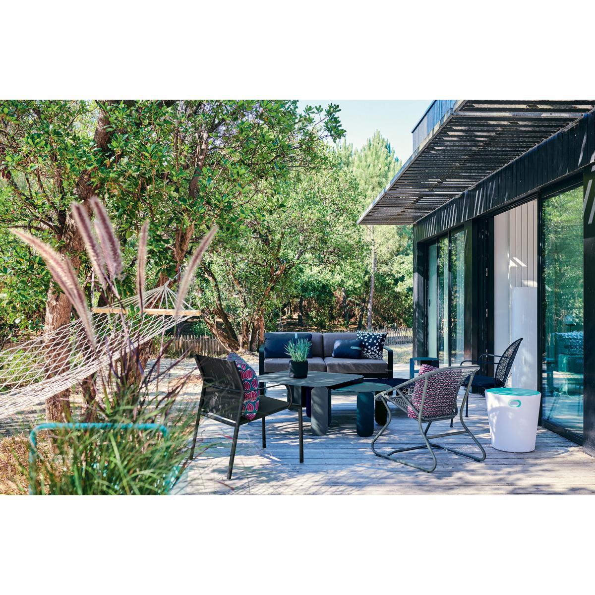 Refined and ethereal, the Bebop coffee table collection stands out for its diversity, stability and striking design. Available in different shapes, several sizes and multiple vibrant colours, the Bebop range meets all your needs! They can be used as coffee tables, bedside tables or pedestal tables, and can be easily moved around and positioned wherever you like. They fit in just as well indoors in your living room, bedroom or entrance hall, as outdoors on your balcony or in the garden. This Bebop side table is a superb illustration of one of Fermob's key themes: simplicity. Tristan Lohner, a designer who’s in tune with Fermob's values, has designed a stunning table thanks to the skill of Fermob’s technicians: the top is supported almost invisibly, as if by magic, on feet that reveal the purity of a simple form. These Bebop tables available in different heights can be arranged separately, or used together to create a beautiful graphic composition. To save space, the tables interlock.