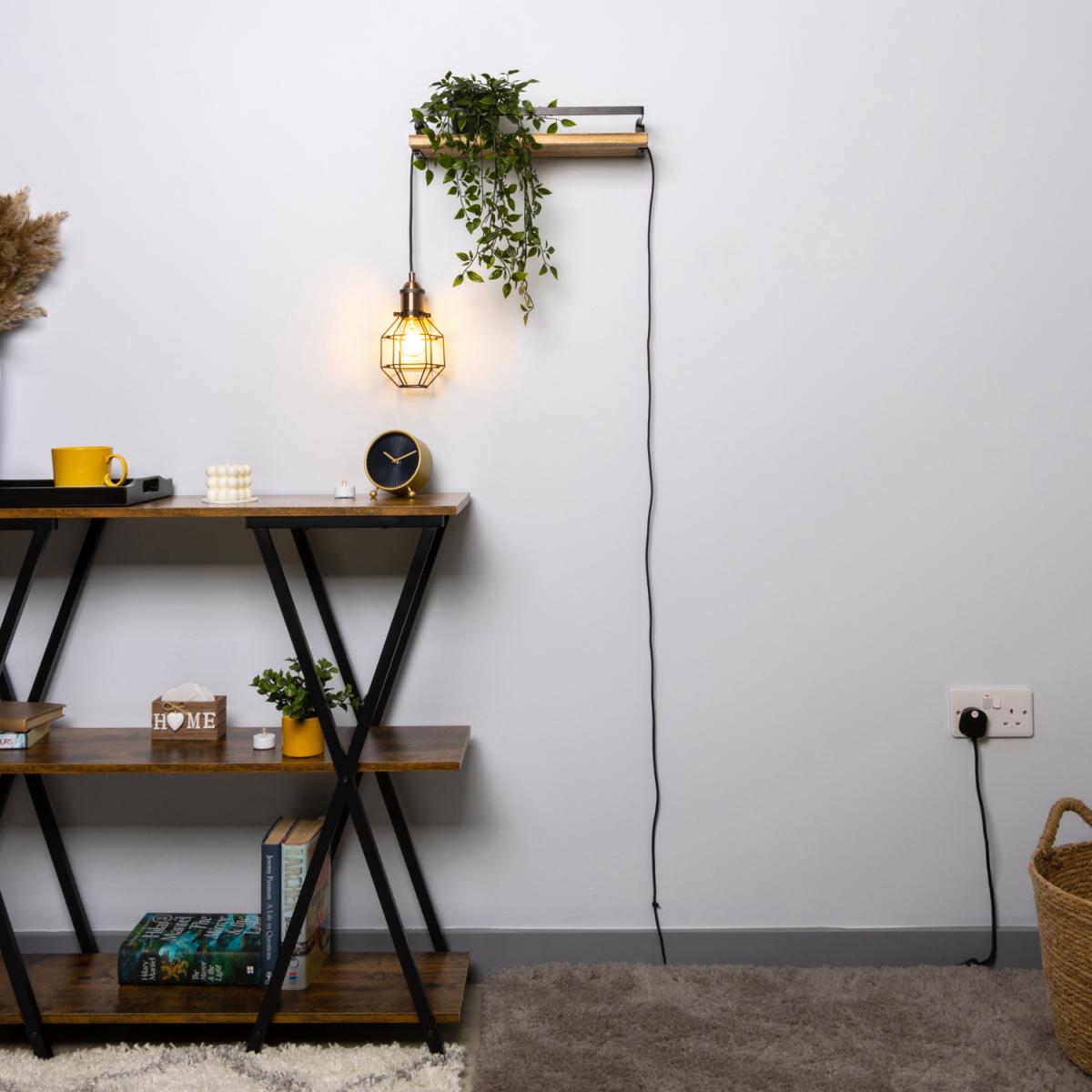 The Beca Plug In Cable Ceiling Pendant Light Kit in Black and Copper is the perfect industrial accent for your living room or bed room. The wire cage and copper finish of the bulb holder give this pendant light a timeless feel and the look is completed with a vintage filament bulb. The wall hooks that are included with this plug in light leave minimal damage to your wall, making this perfect for renters to add their own personal flair