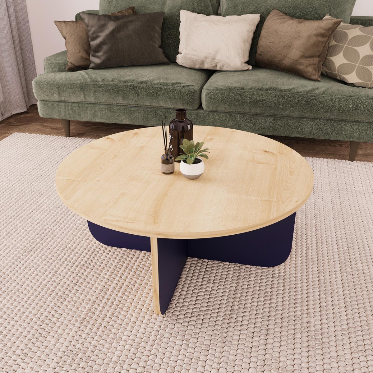 I love the Beca round coffee table for its versatile combination of warm oak and deep blue, which adds a contemporary yet cosy touch to a variety of interiors. It works particularly well in modern, Scandinavian, or eclectic living spaces where a subtle pop of colour can bring a room to life. When styling, consider pairing it with neutral or pastel tones on your sofa and accessories to let the table stand out, or go bolder with contrasting colours and metallic accents. Practical tips include using the surface for both decor and everyday essentials-keeping a few small plants, candles, or books on top can make it both functional and styled without clutter. Its rounded shape encourages a welcoming spirit and effortless flow within the living area.