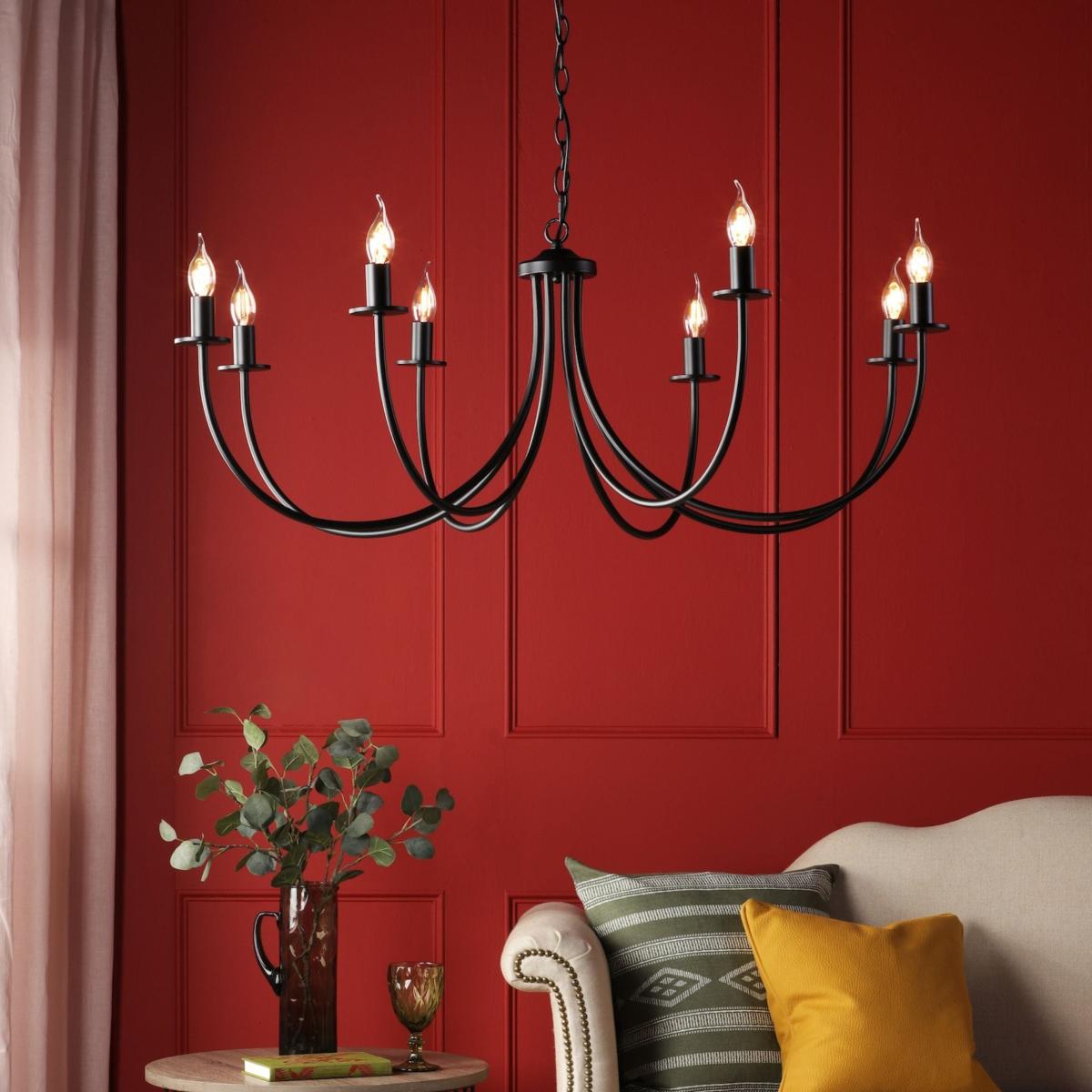 Becca 8-light chandelier, featuring a minimalist, matte black design and exposed lamps. Add a touch of modern elegance to your space with the Becca 8-light chandelier, a stunning fixture that perfectly balances modern design with bold, functional style. Featuring a sleek matte black finish, this chandelier boasts sweeping arms that create a sense of drama and sophistication. The exposed lamps add an industrial flair, making it a striking focal point in any room. Ideal for dining rooms, living areas or entryways, the Becca chandelier provides ample lighting while maintaining an open, airy feel. Its contemporary design seamlessly blends with a variety of interior styles, from industrial to modern, making it a versatile choice that enhances the atmosphere of your home with both style and elegance. Becca 8-light chandelier, featuring a minimalist, matte black design and exposed lamps. Add a touch of modern elegance to your space with the Becca 8-light chandelier, a stunning fixture that perfectly balances modern design with bold, functional style. Featuring a sleek matte black finish, this chandelier boasts sweeping arms that create a sense of drama and sophistication. The exposed lamps add an industrial flair, making it a striking focal point in any room. Ideal for dining rooms, living areas or entryways, the Becca chandelier provides ample lighting while maintaining an open, airy feel. Its contemporary design seamlessly blends with a variety of interior styles, from industrial to modern, making it a versatile choice that enhances the atmosphere of your home with both style and elegance.