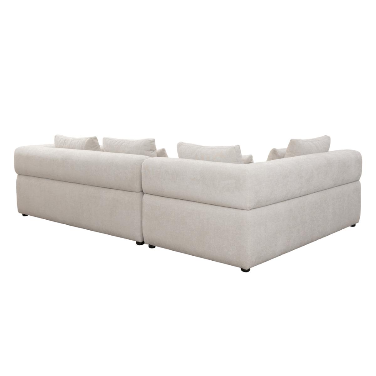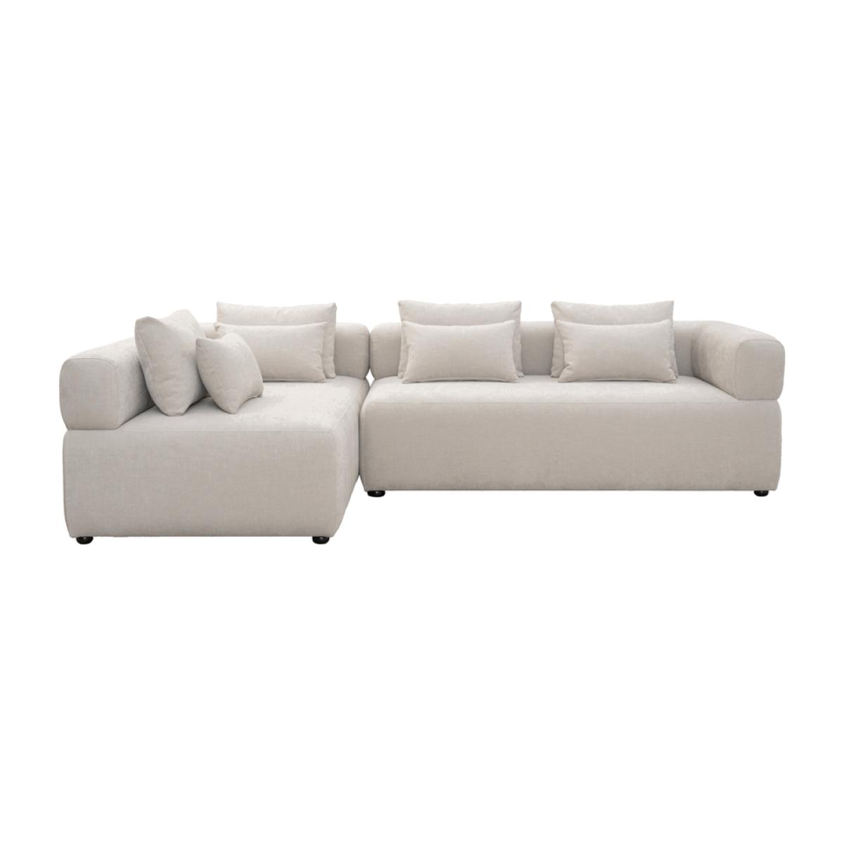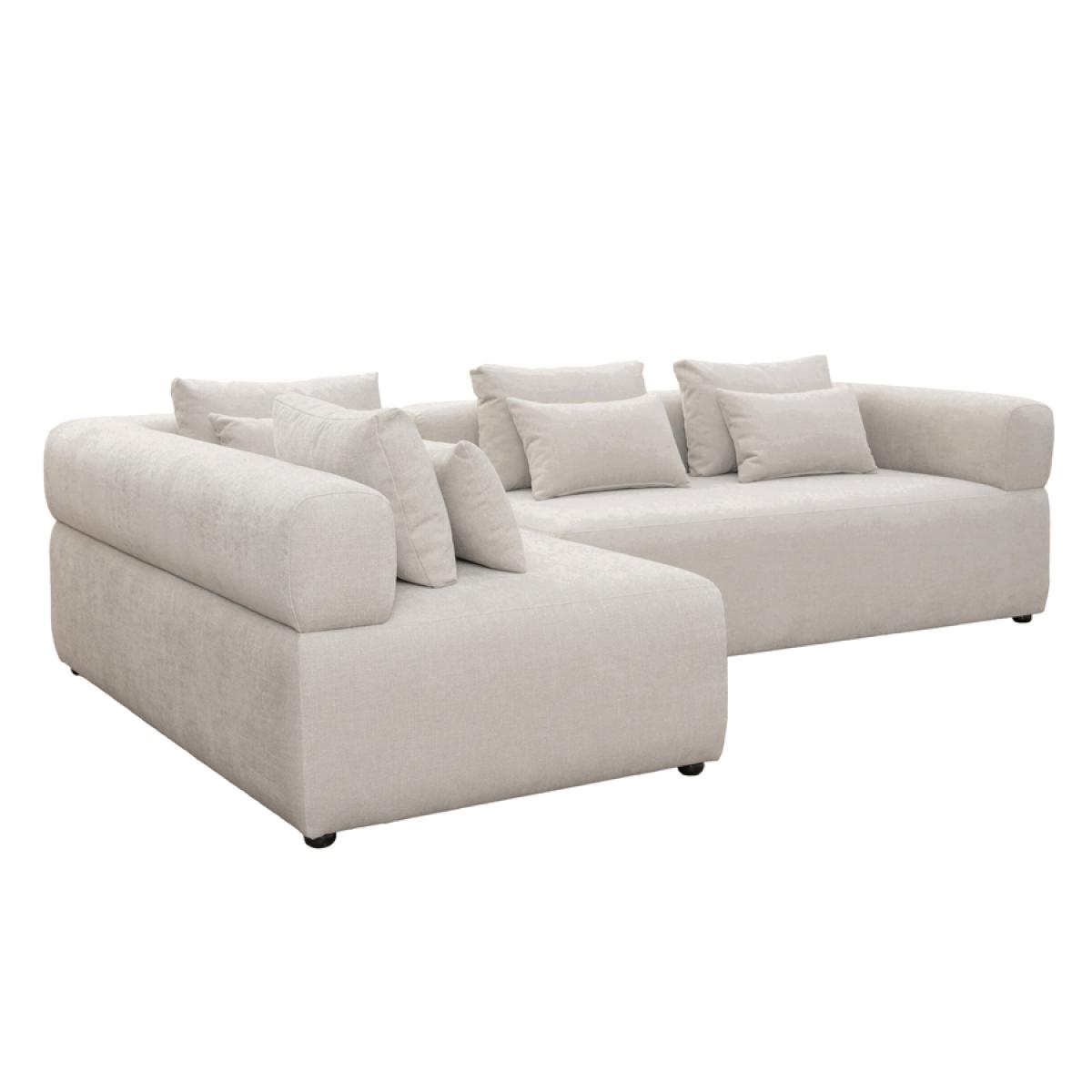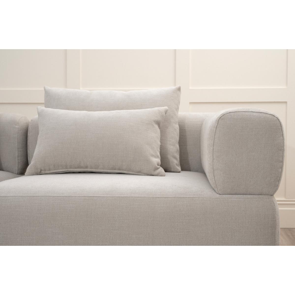 Spacious contemporary corner sofa inspired by high-end Italian interiors. Sprung seat and backrest with deep foam and fibre filling. Feather-filled scatter cushions. Highly durable soft-touch woven fabric with a linen-like appearance. Constructed from modular components that simply and securely connect together, allowing for ease of installation and multiple configurations. Many other arrangements are possible, please contact our sales team if you require a configuration not featured on our website. Free returns on sofas if you change your mind within 7 days. Simply notify us, put the sofa back in the box, and we will collect it and send you a full refund. (This offer excludes Scottish Highlands and Islands & any Ireland addresses).