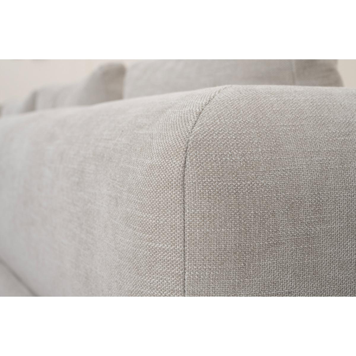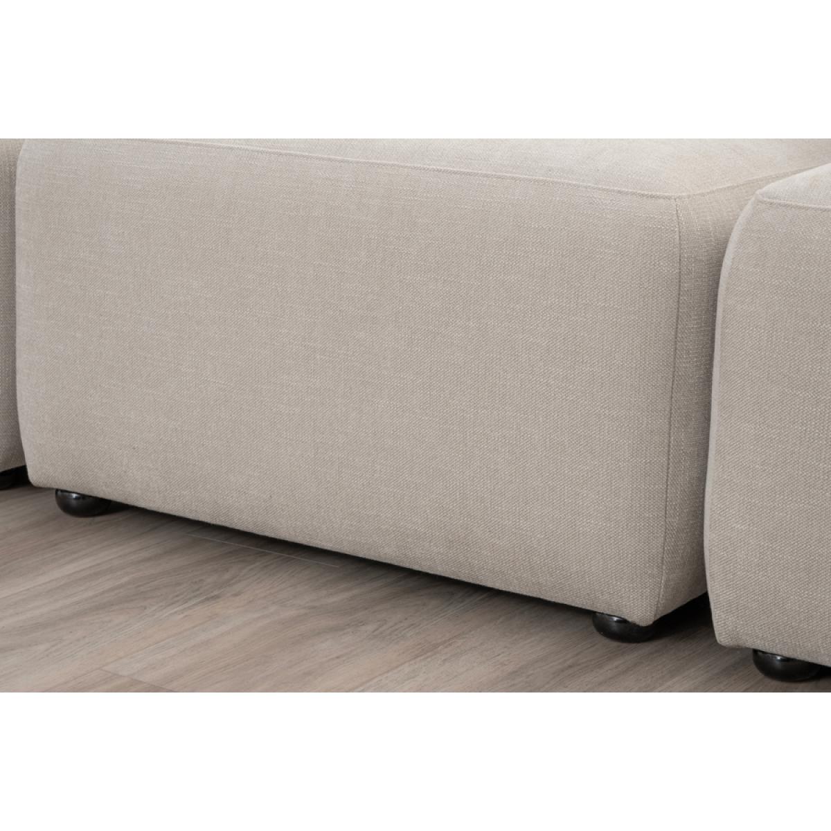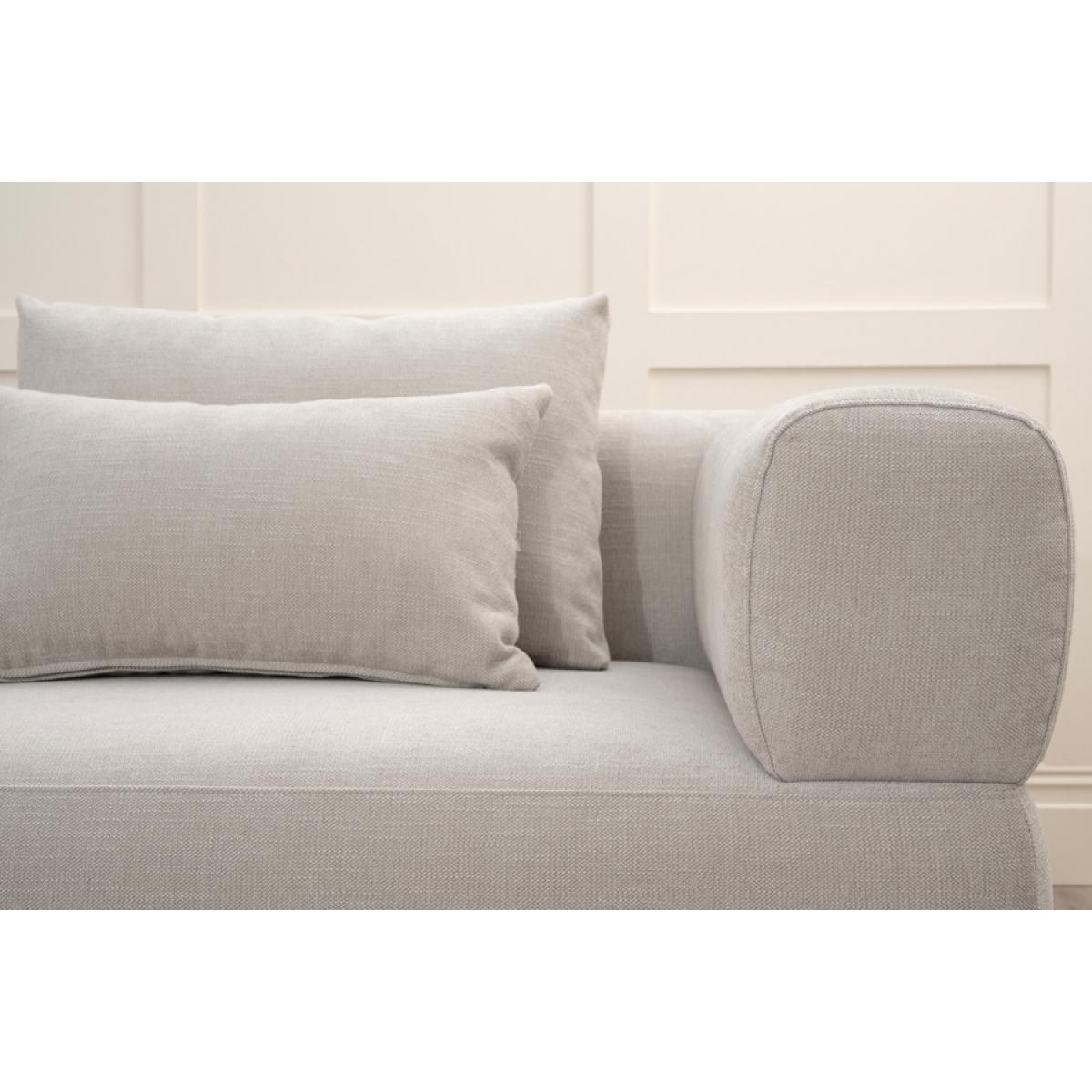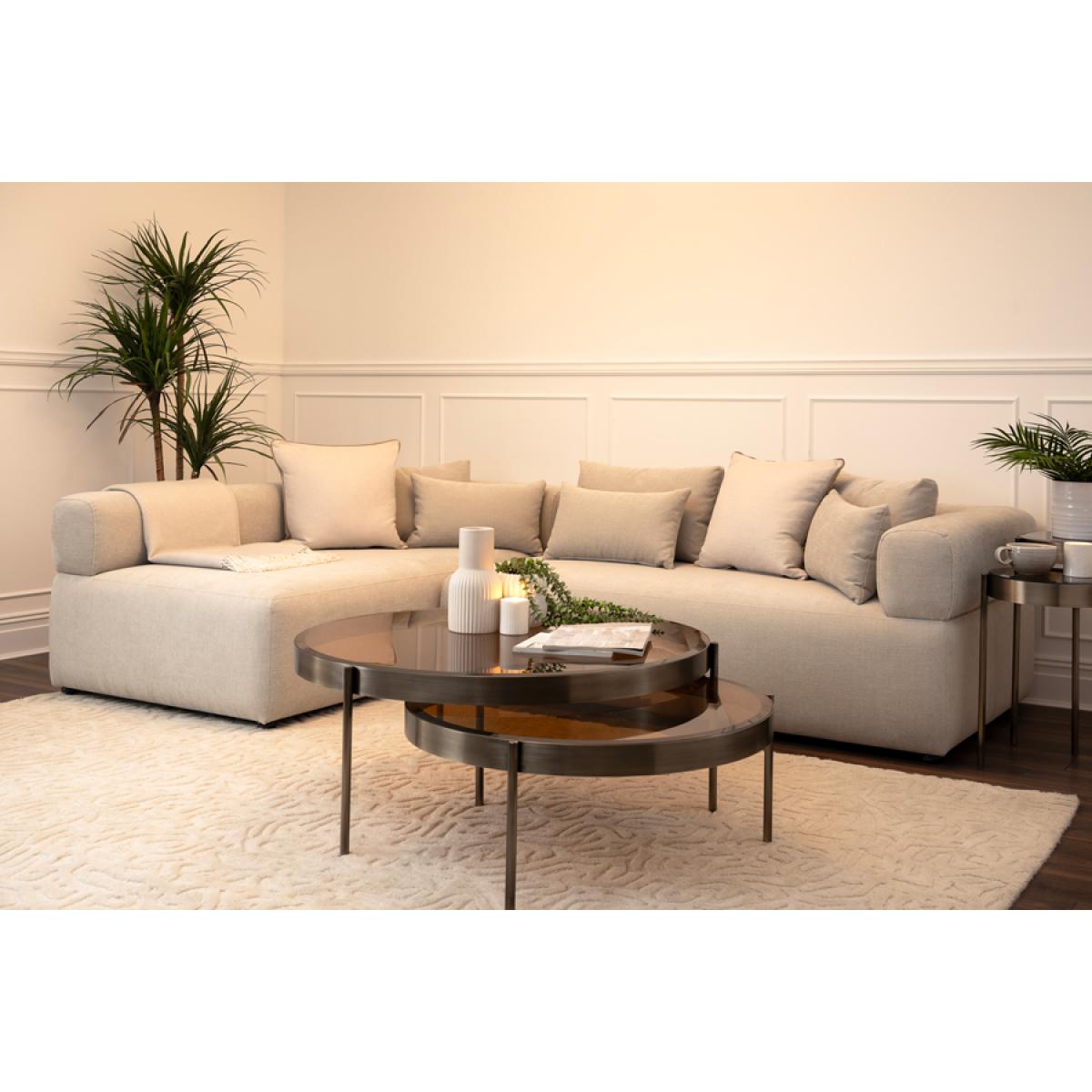 Spacious contemporary corner sofa inspired by high-end Italian interiors. Sprung seat and backrest with deep foam and fibre filling. Feather-filled scatter cushions. Highly durable soft-touch woven fabric with a linen-like appearance. Constructed from modular components that simply and securely connect together, allowing for ease of installation and multiple configurations. Many other arrangements are possible, please contact our sales team if you require a configuration not featured on our website. Free returns on sofas if you change your mind within 7 days. Simply notify us, put the sofa back in the box, and we will collect it and send you a full refund. (This offer excludes Scottish Highlands and Islands & any Ireland addresses).
