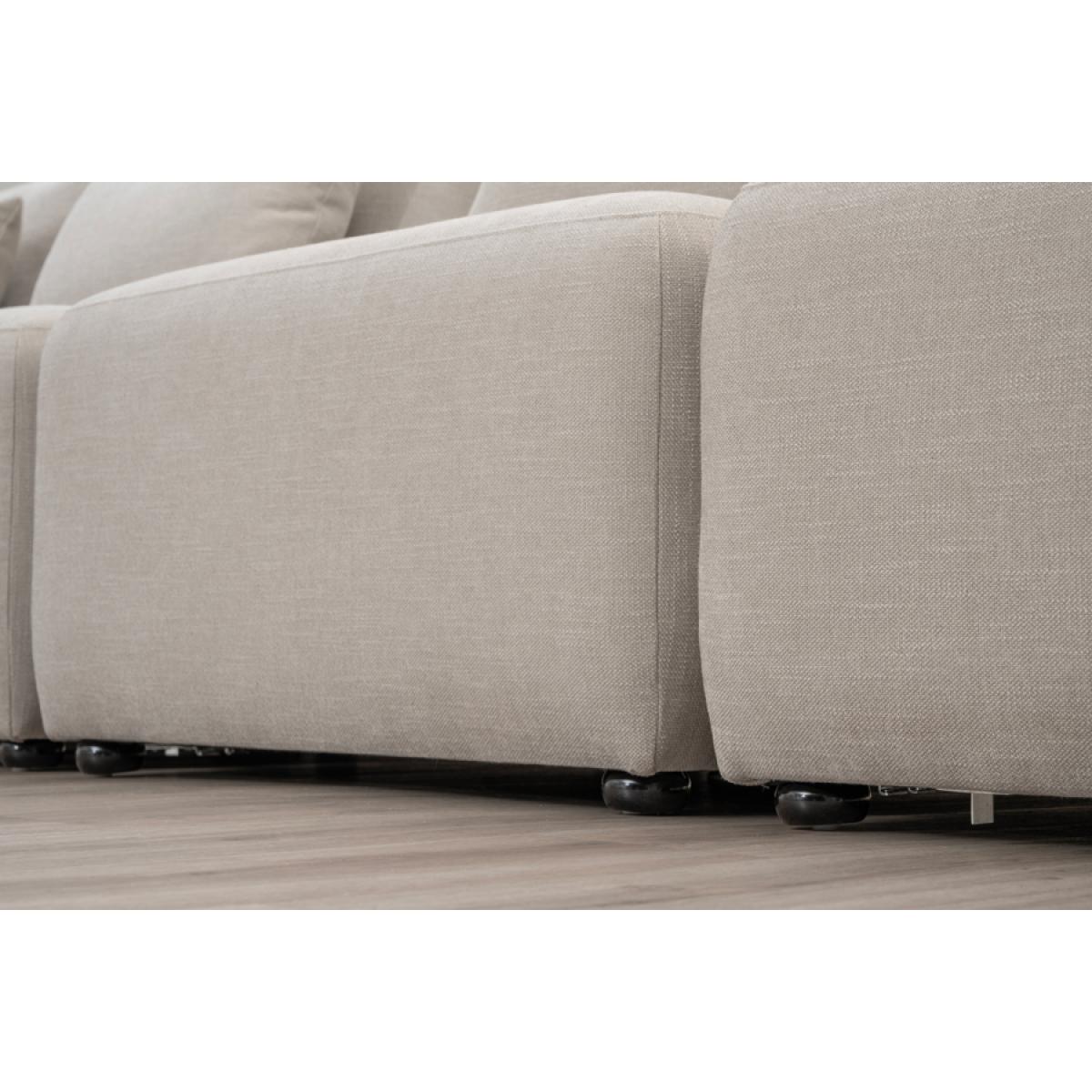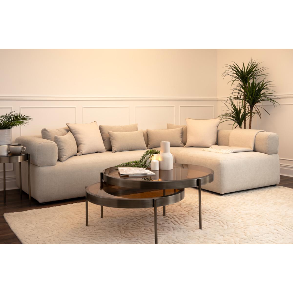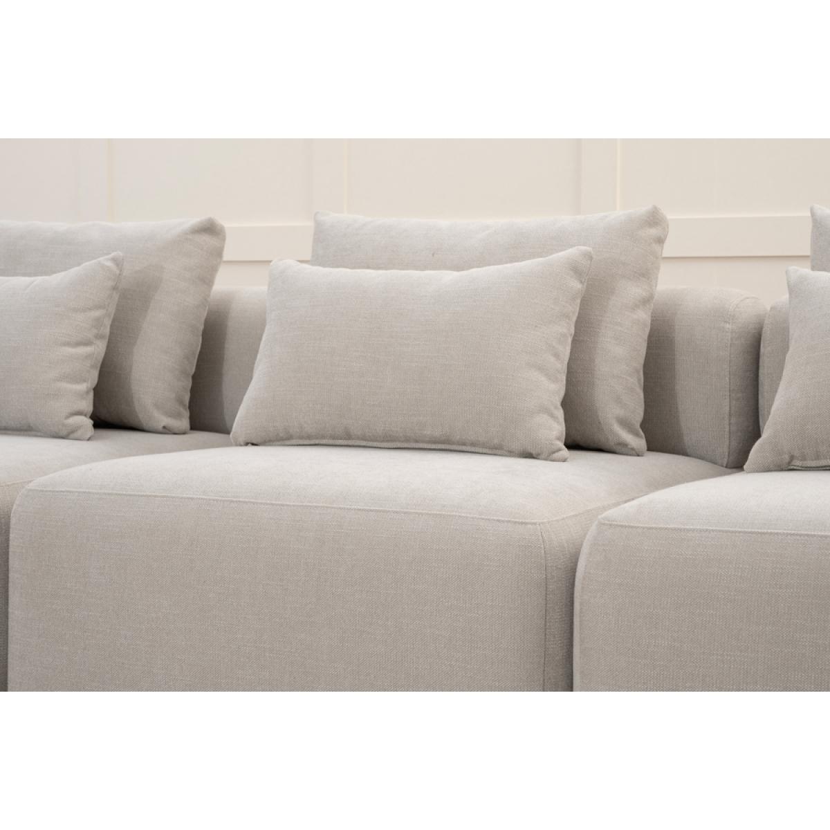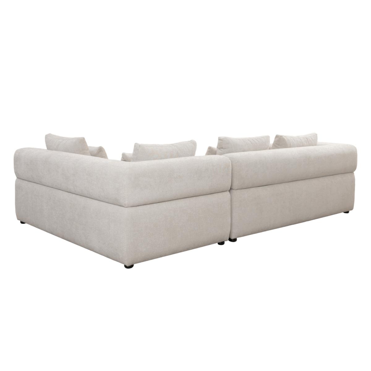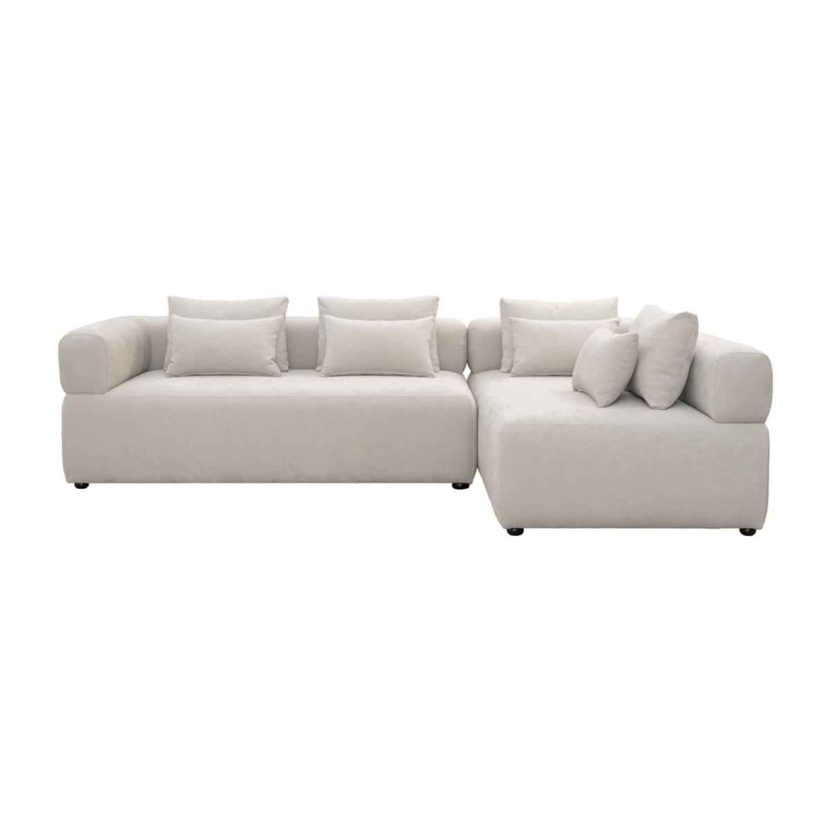 Spacious contemporary corner sofa inspired by high-end Italian interiors. Sprung seat and backrest with deep foam and fibre filling. Feather-filled scatter cushions. Highly durable soft-touch woven fabric with a linen-like appearance. Constructed from modular components that simply and securely connect together, allowing for ease of installation and multiple configurations. Many other arrangements are possible, please contact our sales team if you require a configuration not featured on our website. Free returns on sofas if you change your mind within 7 days. Simply notify us, put the sofa back in the box, and we will collect it and send you a full refund. (This offer excludes Scottish Highlands and Islands & any Ireland addresses).