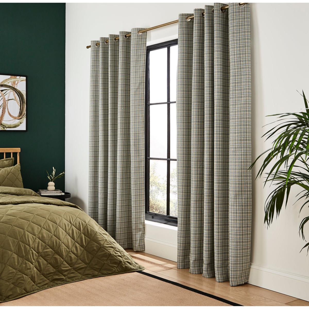 * Includes 2 x Curtain Panels * Stylish Checked Design * Blackout Lining - Reduces Unwanted Light, Aids Privacy * Made from Durable Polyester * Brushed Steel Eyelets * Available in Multiple Colourways & Sizes Make a statement with the Beckett Basket Weave Blackout Eyelet Curtains, which feature a stylish woven, checked design. With a convenient blackout lining to reduce unwanted light and help aid privacy, these curtains boast chic, brushed steel eyelets and are available in a myriad of sizes to adequately fit your windows.
