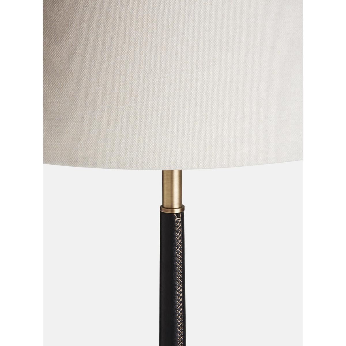 The sleek, masculine design of our Beckett floor lamp takes its cues from Soho House 76 Dean Street, where rich interiors can be found in one of Westminster's oldest townhouses. A leather-wrapped body with contrasting hand-stitched detail is complemented by a cream linen, tapered drum shade and an antique brass base. Made to emit a warm glow, place in any corner of the room or to light up a hallway. Leather-wrapped body Contrasting hand-stitched detail Antique brass base Linen tapered drum shade Inspired by Soho House 76 Dean Street
