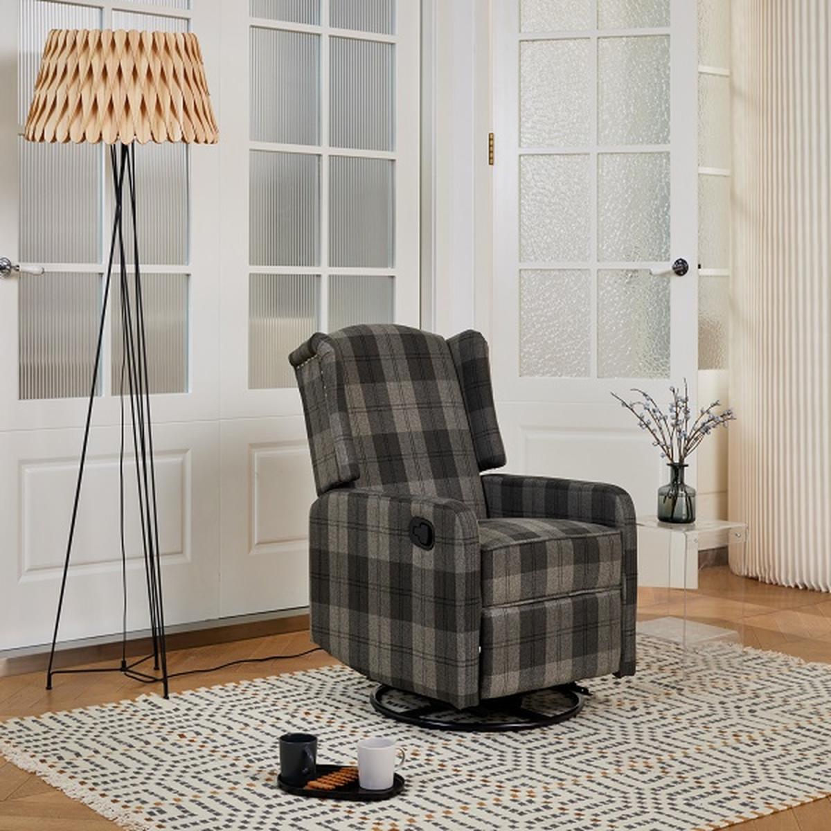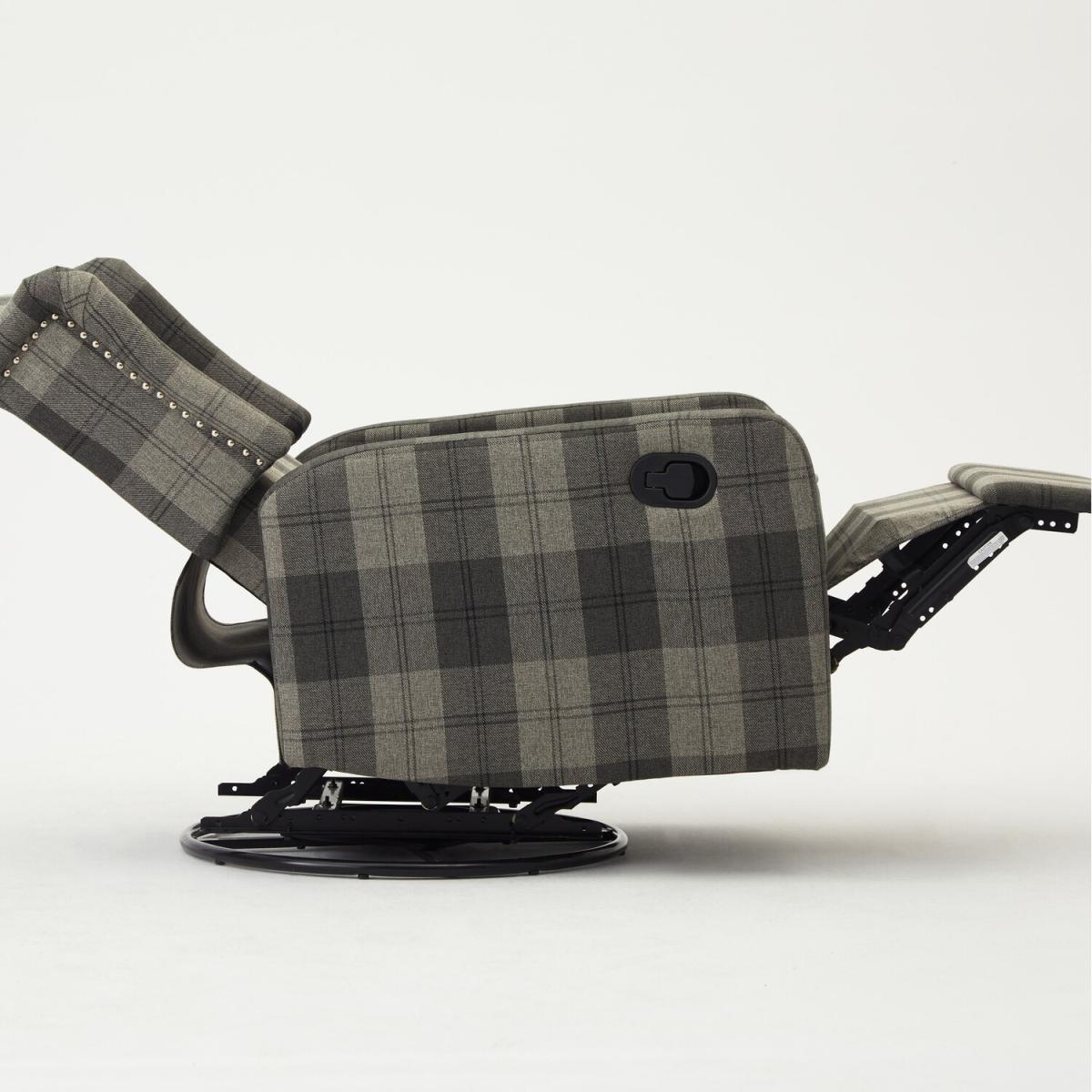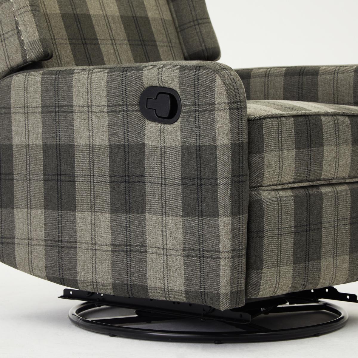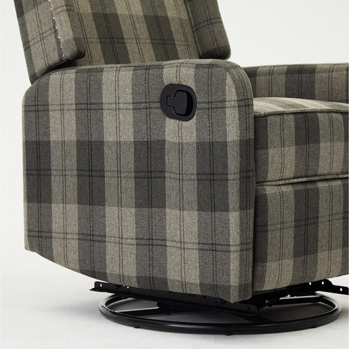 Introducing BECKETT, a padded, statement foam filled recliner with an elegant diamond design button back design and manual swivel feature. BECKETT has a simple manual recline latch mechanism for when you want to take your relaxation that step further, just place your hand on the side lever and pull to release the footrest and lean back to recline the backrest. Push gently on the footrest with your legs to lock it back into place, and the backrest will also return to its upright position. The hidden feature is the manual swivel of this recliner. To get the most out of your item we recommend gently cleaning with the upholstery attachment of your vacuum cleaner or using a soft hand brush once per week.