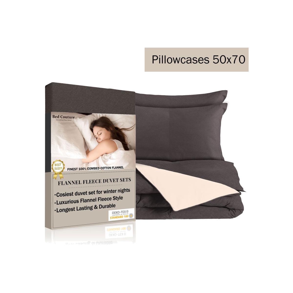 Bed Couture Flannel Duvet Set with Pillowcases 50x70cm - Anthracite / Ecru / King / Superking