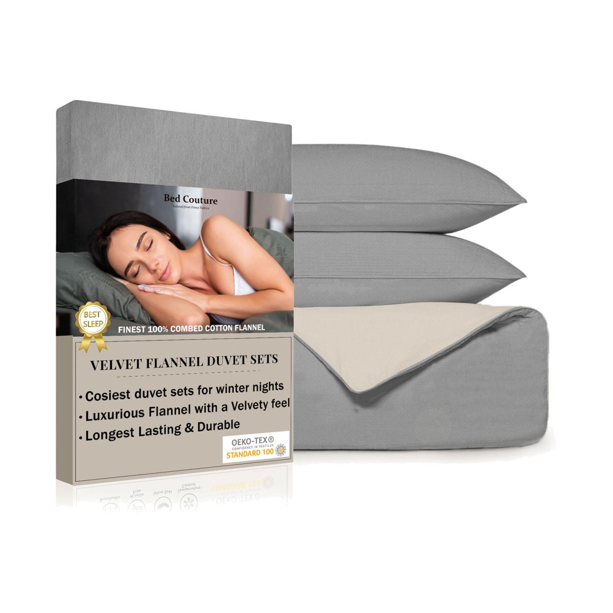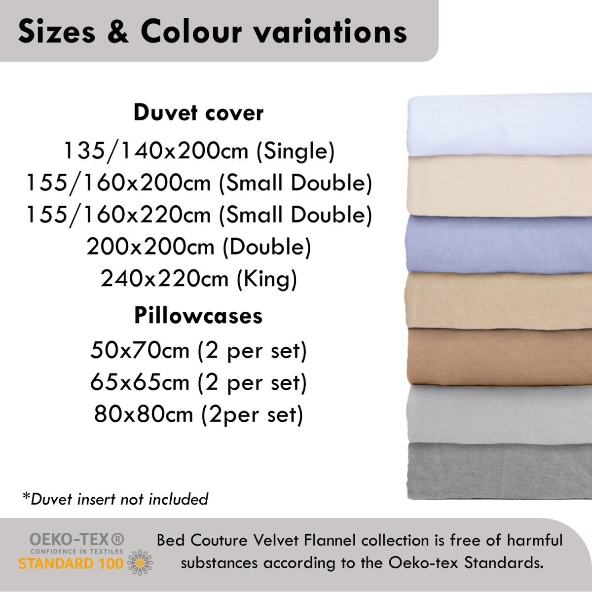 Bed Couture Velvet Flannel Duvet Set and pillowcases 65x65cm - Ecru/Taupe / Single