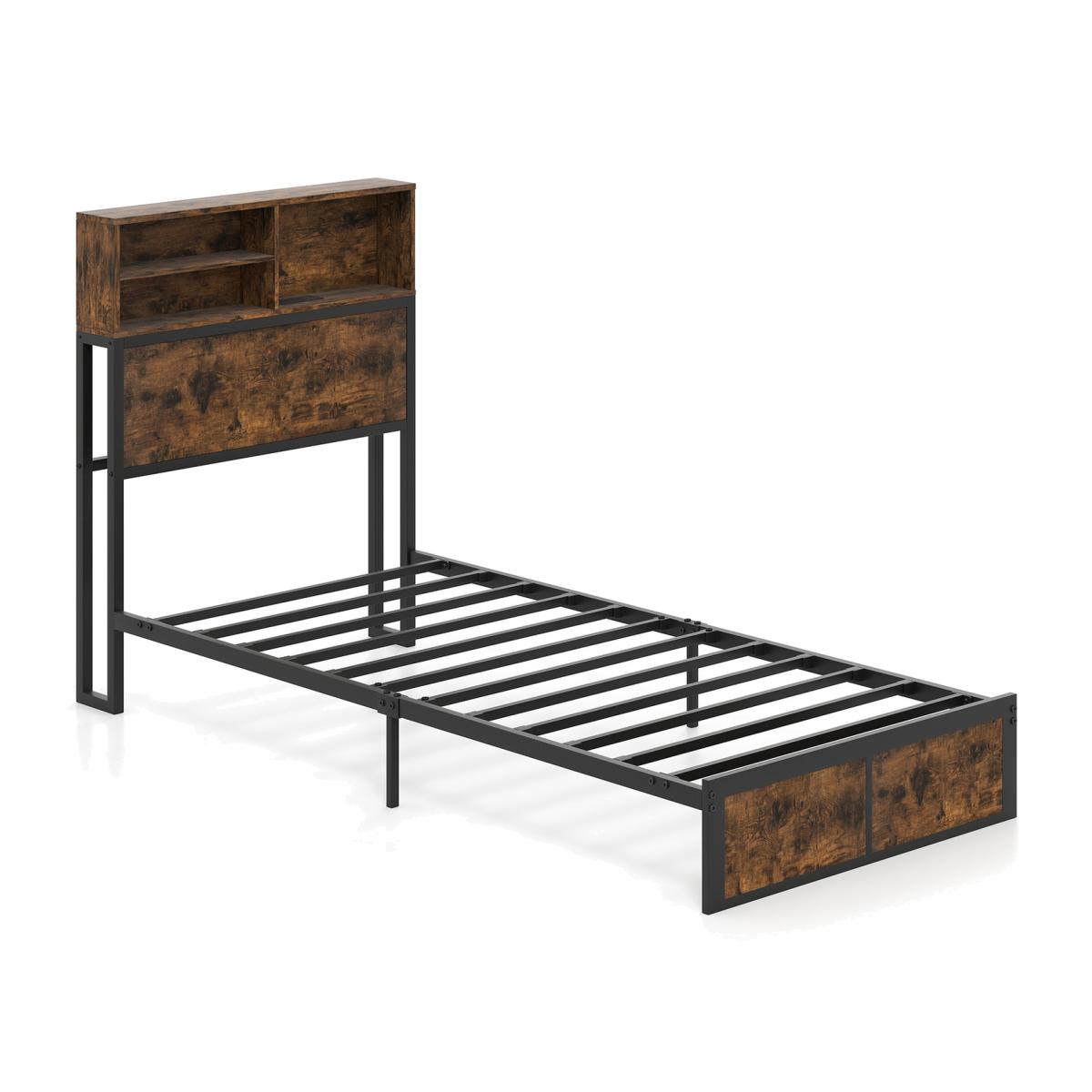 Enhance your sleeping space with this heavy-duty metal platform bed! No worry about the low battery! The bed frame features a recessed power strip in the headboard, making it easy to charge your devices. The storage headboard offers additional space to organise your essentials. Constructed from heavy-duty metal slats, this platform bed is built to last. Moreover, equipped with solid slats and additional middle metal legs, this bed frame provides substantial support. Below the bed, you will find a generous space, keeping your bedroom tidy and maximising available space. All in all, the industrial bed frame makes up a high-quality and understated appearance.