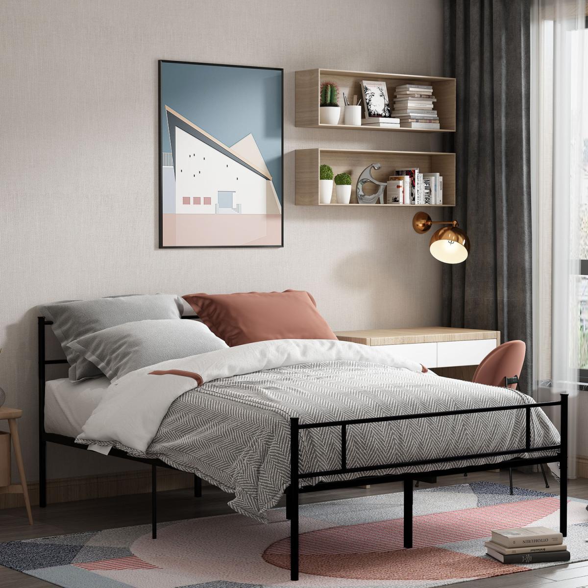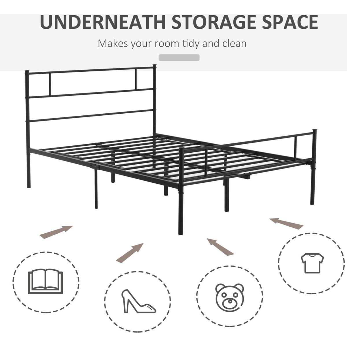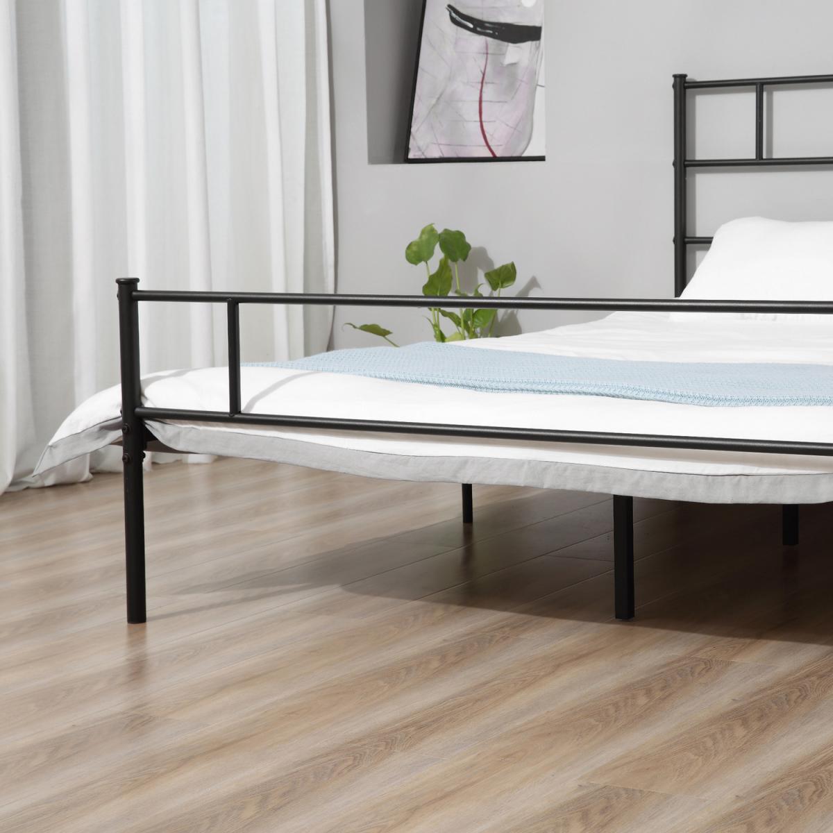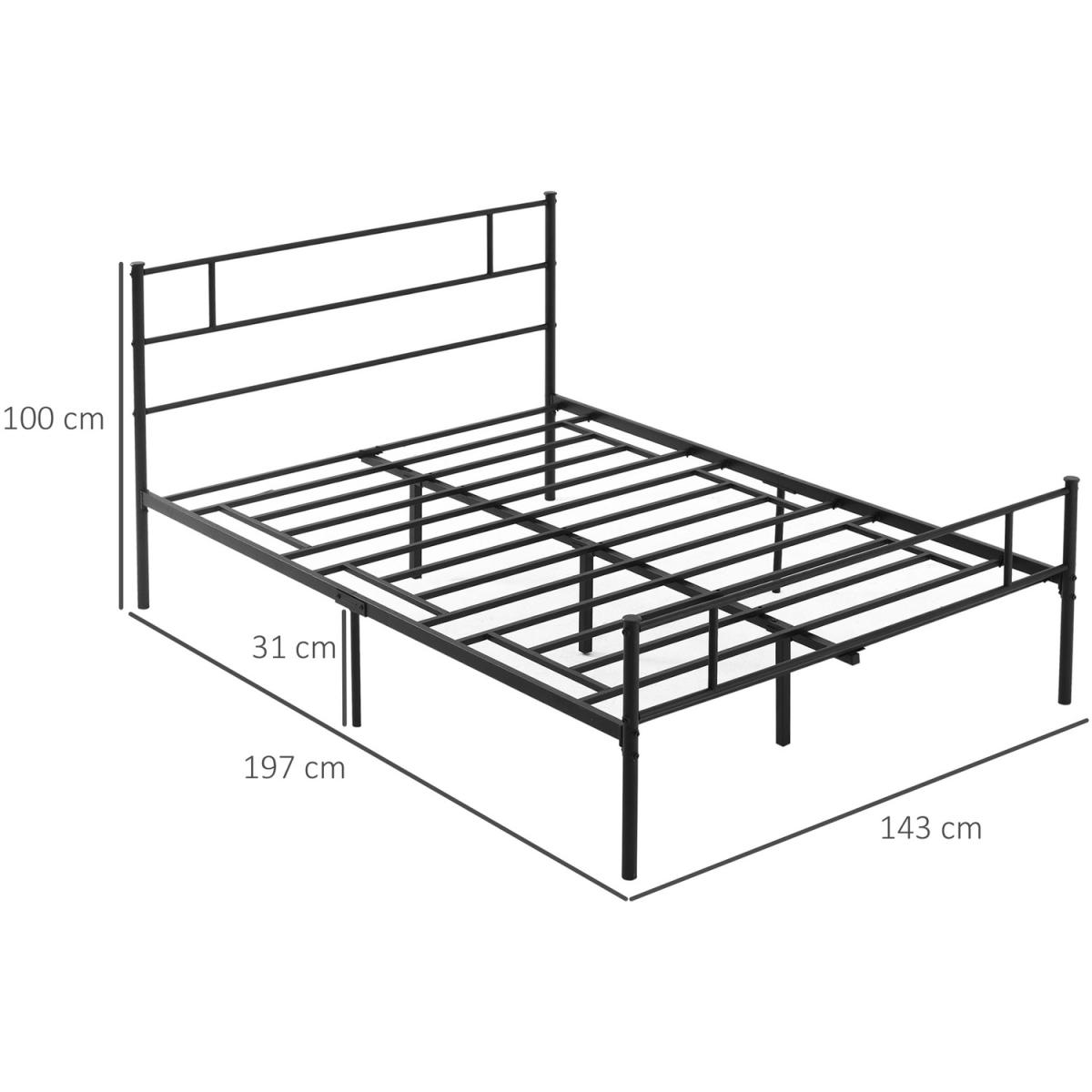 Make dream times minimal with this double bed frame from HOMCOM. The slim-cut frame, in a matte black finish, makes it suitable for practically any bedroom space - whatever your interior decor. Made from metal with nine legs, this frame will keep you supported so you can rest and relax in peace - with the built-in slats and tall headboard holding your mattress in place at all times. Comes with spacious under-bed clearance.