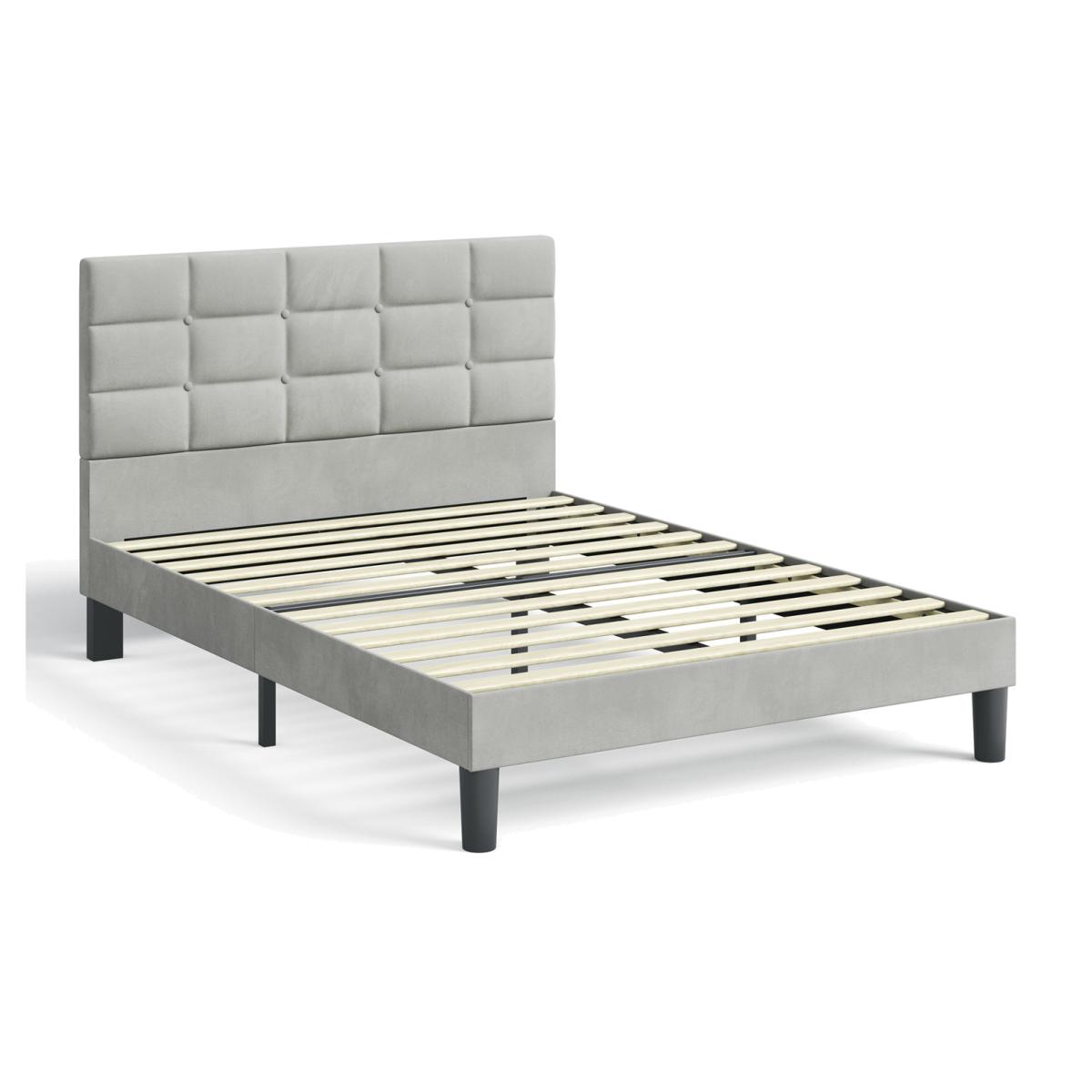 The bed frame with upholstered headboard is equipped with 12 solid wood slats and 4 steel supports, which reinforce the bed frame and provide robust support, reduce environmental pollution and extend the life of the bed frame. The maximum load-bearing capacity can be up to 1000 lbs, so there is no need to worry about its firmness. The bed frame headboard is made of high-quality breathable linen-look fabric and built-in high-density memory foam, you will feel very soft and comfortable when you lean on the headboard to read. The firm wood slats are equipped with Velcro and EVA mute strips, avoiding friction between the solid wood slats and the metal frame and sliding of the mattress, which prevents friction and effectively eliminates noise. Furthermore, the thickened metal bed feet can protect the floor from scratches, prevent sliding and reduce noise, giving you a quiet and comfortable resting environment.