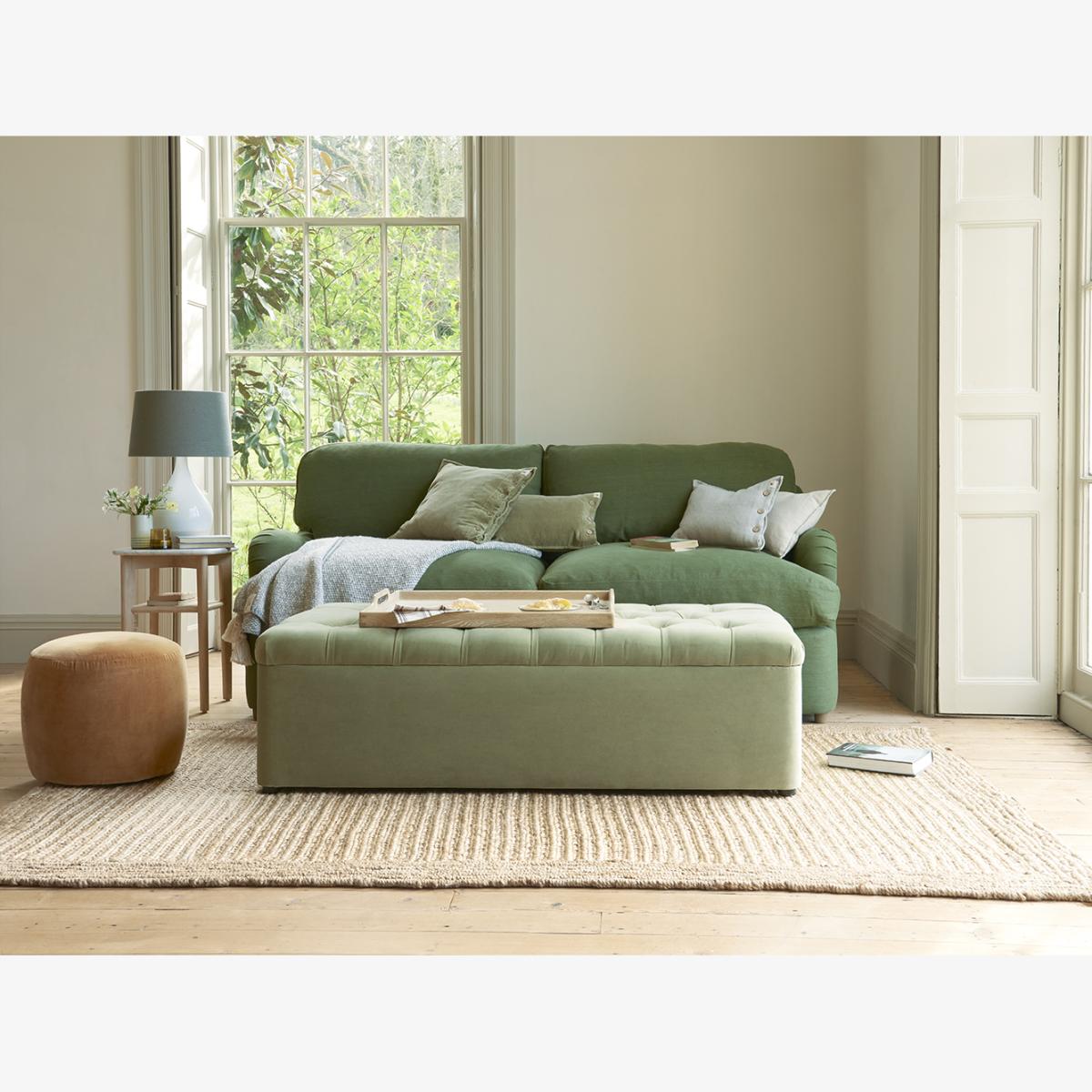 I love this little footstool for it’s versatile and practical style - it works especially well in relaxed, contemporary interiors or even country cottage schemes. It’s ideal as a spot for putting your feet up or as an additional seating option when you’re entertaining. The button detail adds a subtle touch of craftsmanship, giving it a timeless appeal. Styling tip: pair it with a soft throw or layered cushions on your sofa to create an inviting, layered look, and keep it at arm’s reach for those lazy lounging afternoons. It’s a great addition to living rooms where function meets comfort, adding a cosy yet polished feel.