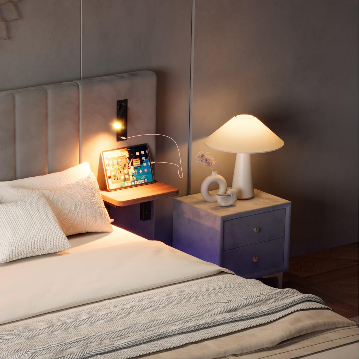 Light on the bedside, this bed is designed with 2 rotatable lights for nighttime lighting and reading. You can turn off the main light in the room and turn on the mood lighting on the side of the bed. The reading light can rotate freely, automatically turns off the power when closed, and automatically lights up when opened. Durable and Stylish, constructed from a combination of white velvet and iron, this bed ensures long-lasting durability and adds a touch of modern elegance to any bedroom decor. The velvet upholstery provides a luxurious feel, while the iron frame offers sturdy support. Underbed Lighting Strip, There are 60,000 colours of LED light strips, you can change the colour and brightness by remote control or mobile app. LED light strips can be adjusted for single or spliced colours, change the brightness and colour temperature, play music or turn on the sound playback device. You can make the lights change colour and brightness with the rhythm of the music. Bedside Storage Flat Panel, There is a storage panel on the left and right side of the bed, which can be used to place mobile phones, alarm clocks, books, ornaments and other daily items. Charging socket. This bed is designed for adults and teenagers. The headboard has a built-in charging outlet with integrated 1 Type A and 1 Type C charging ports, allowing you to conveniently charge your devices without getting out of bed. Comfortable upholstered headboard, made of velvet fabric, the inner layer is filled with sponge, which is soft to the touch and not afraid of bumps and injuries. Easy to install, detailed instructions and complete parts can help you complete the assembly. The fun of installation makes you enjoy the bed more.