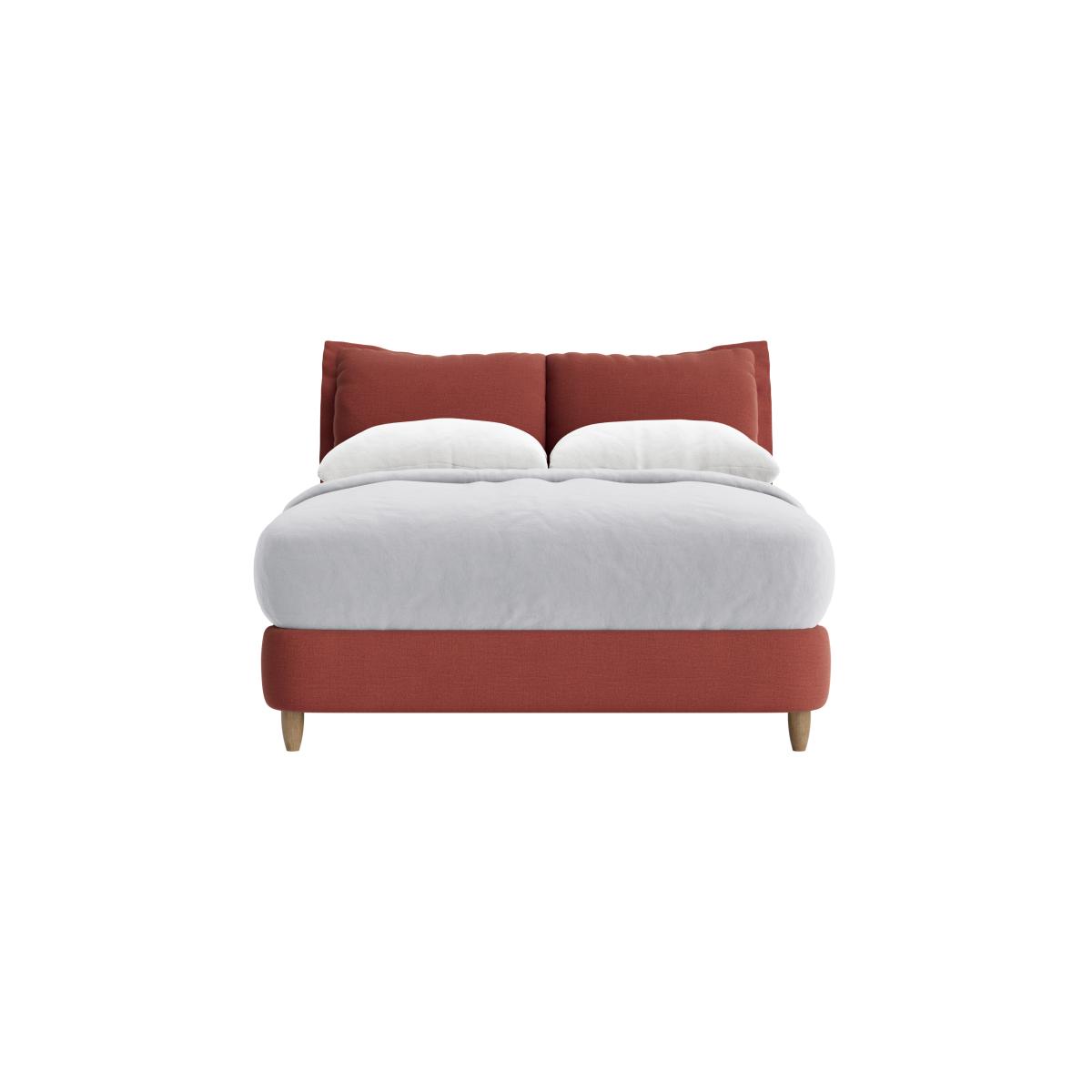 I really love this bed frame for its modern, clean lines and versatile style. Its warm terracotta tone adds a cosy vibe, making it a wonderful anchor piece for both contemporary and eclectic interiors. It's particularly effective in bedrooms with mid-century or Scandinavian influences, where muted, natural hues are common. To style around it, consider adding layered bedding in neutral or complementary shades, such as soft creams or earthy tones, to create a welcoming and balanced look. Practical tips include coordinating the bed frame with understated bedside tables and lighting to highlight its sleek silhouette without overwhelming the space. Overall, it’s a practical yet stylish choice that can adapt easily to different bedroom aesthetics.
