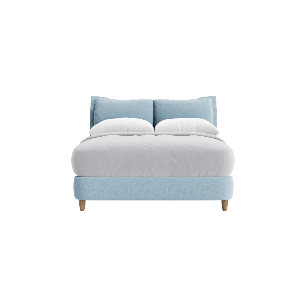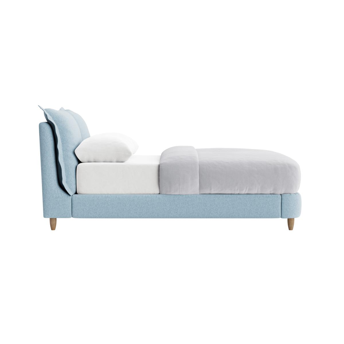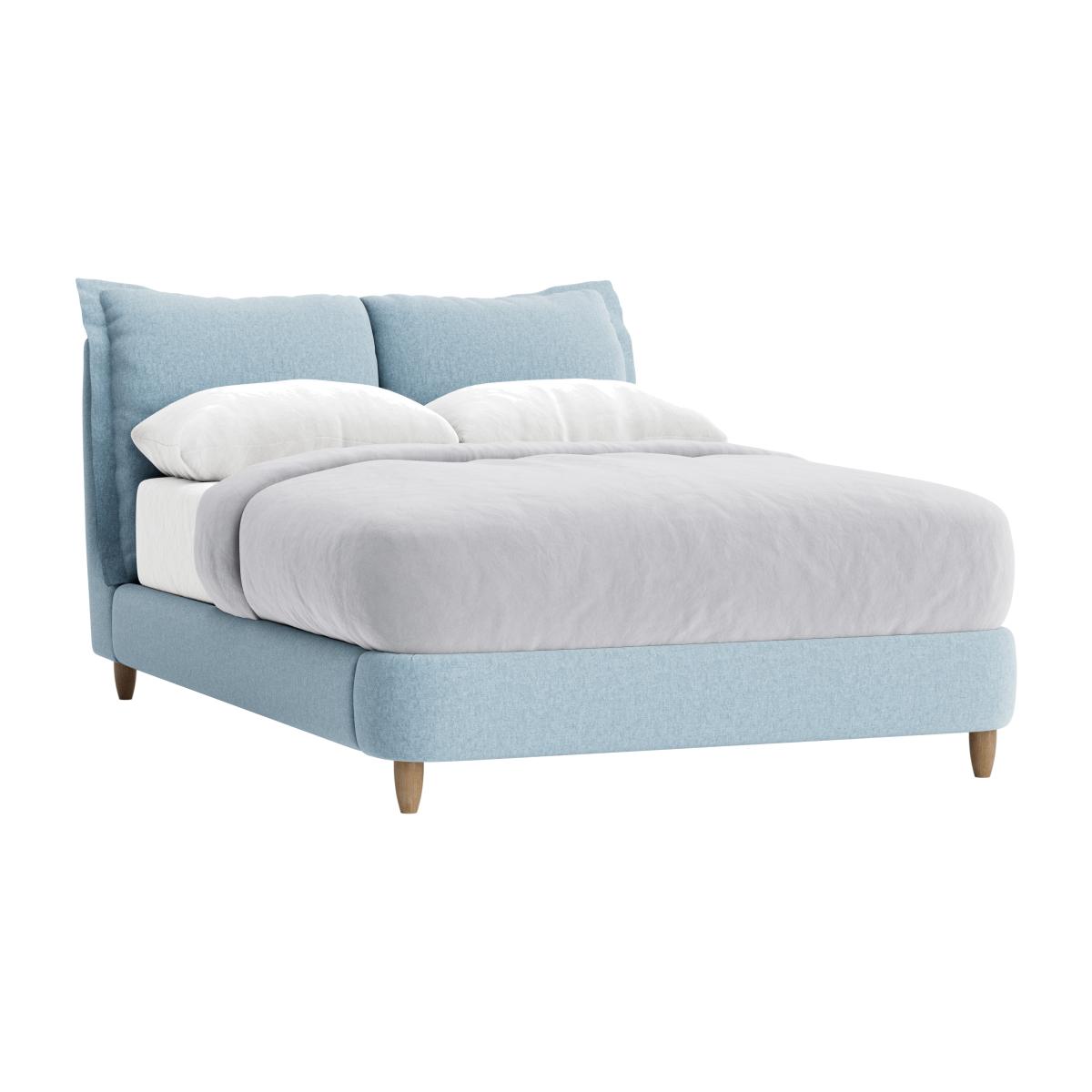 I love this bed frame for its clean, understated design and soft pastel hue, which makes it versatile for a range of interiors from modern minimalism to coastal chic. It works especially well in bedrooms that favour light, airy colours or natural textures. To style it effectively, I recommend pairing it with crisp white bedding and cosy throws for a fresh look, or layering with patterned cushions to add personality. Since the bed has a simple profile, it lends itself well to statement lighting or bedside tables that can stand out without overpowering the overall aesthetic. Its foundation is perfect for creating a calming retreat, whether you opt for contemporary or more traditional decor styles.