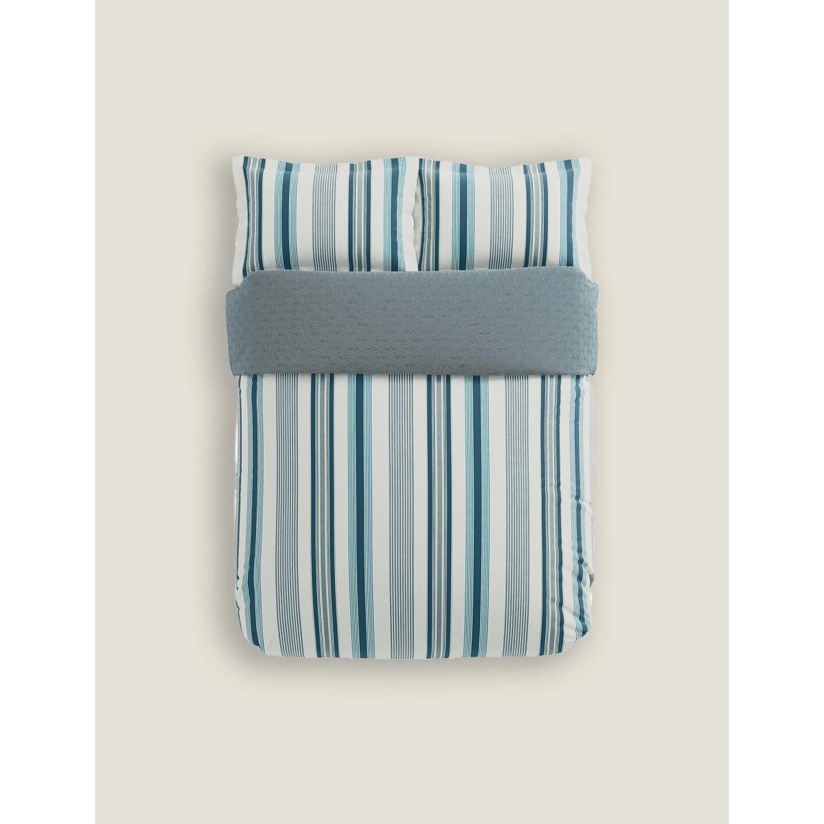 A bold vertical striped pattern lends a distinctive look to this Bedeck of Belfast bedding set. It is crafted from breathable pure cotton with a 180 thread count, which offers comfort while you dream. A durable percale finish gives a matte look and provides a luxurious crisp feel.