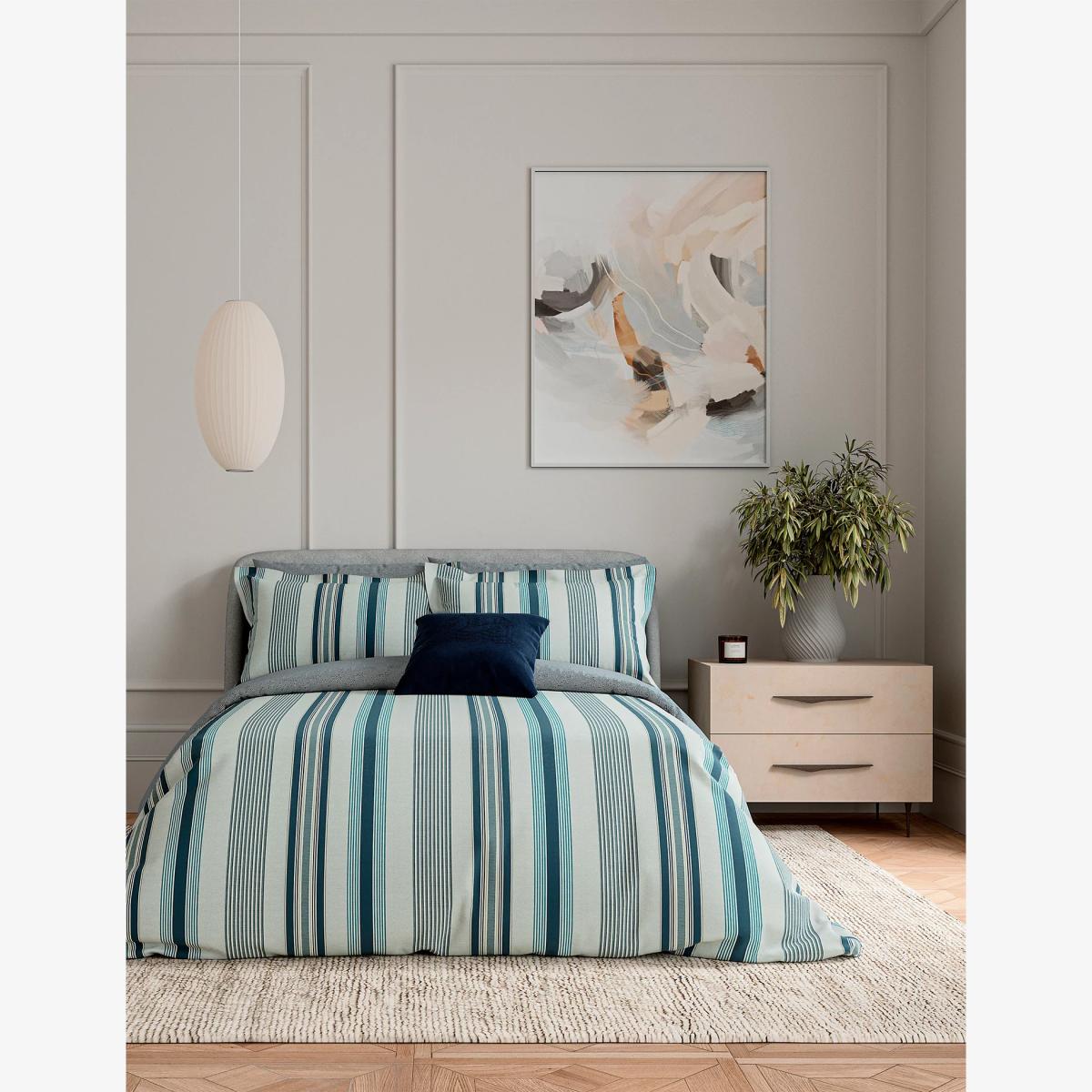 I love this Bedeck of Belfast sheet set because of its clean, crisp look and versatile teal shade that can coordinate with both modern and traditional interiors. It works particularly well in contemporary spaces, especially those with a neutral palette, as it adds a splash of colour without feeling overpowering. Practical styling tips include pairing it with textured cushions or throws in complementary colours to create visual interest, and keeping the overall bedding palette simple to let the teal stand out. This set is ideal for adding a fresh, lived-in feel to master bedrooms or guest rooms, and its cotton percale fabric ensures easy maintenance and comfort.