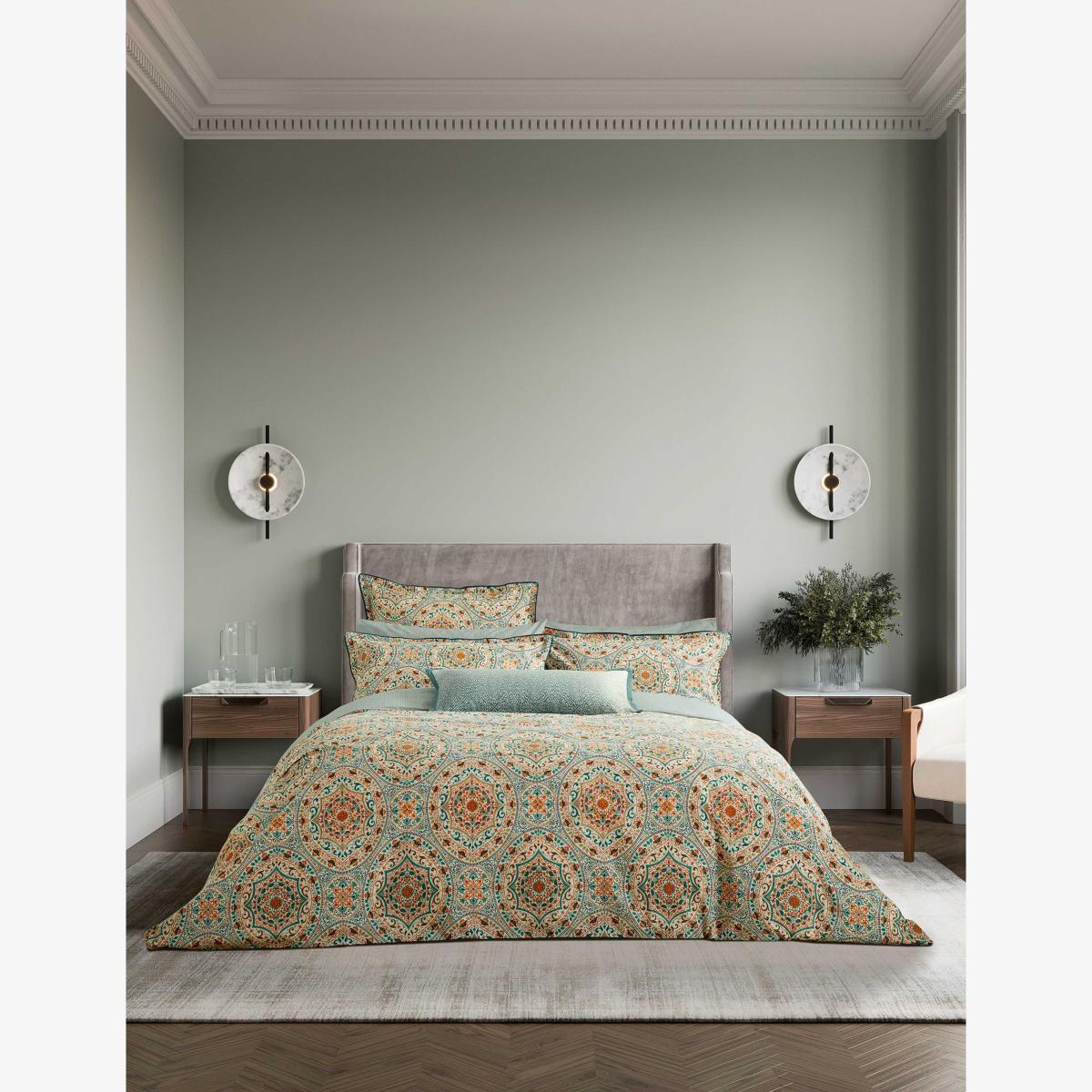 Bring a bold look to your bedroom with the Addison bedding set from Bedeck of Belfast, crafted from 200 thread count pure cotton. An intricate paisley-style pattern in bright tones adds style, while a geometric reverse completes the look.