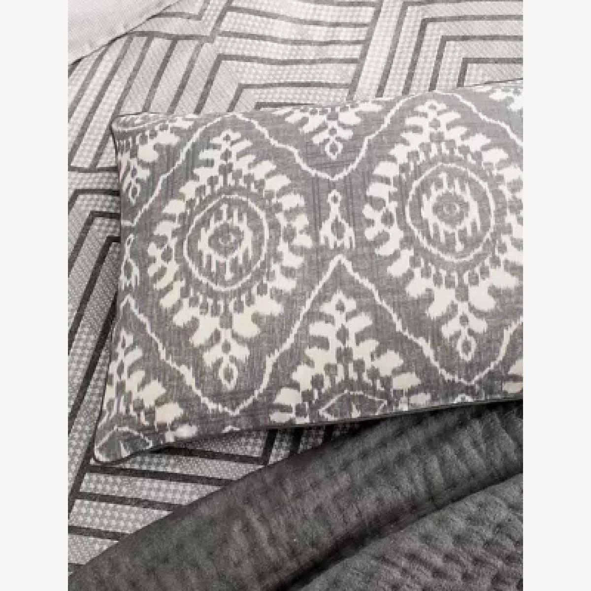 I love the Bedeck of Belfast Pure Cotton Kaya Geometric Bolster Cushion in Charcoal for adding a modern, textured element to neutral or monochrome interiors. Its bold geometric pattern works particularly well in contemporary or minimalist schemes, providing visual interest without overpowering the space. It’s versatile enough to complement both soft furnishings and furniture - think layered on a neutral sofa or paired with other textured textiles for an eclectic look. Practical styling tips include mixing it with plain cushions in shades of grey, white, or black to create contrast, or pairing it with luxurious fabrics like velvet cushions for an elevated feel. Its clean lines and subtle pattern make it a smart choice for a stylish yet restrained aesthetic.