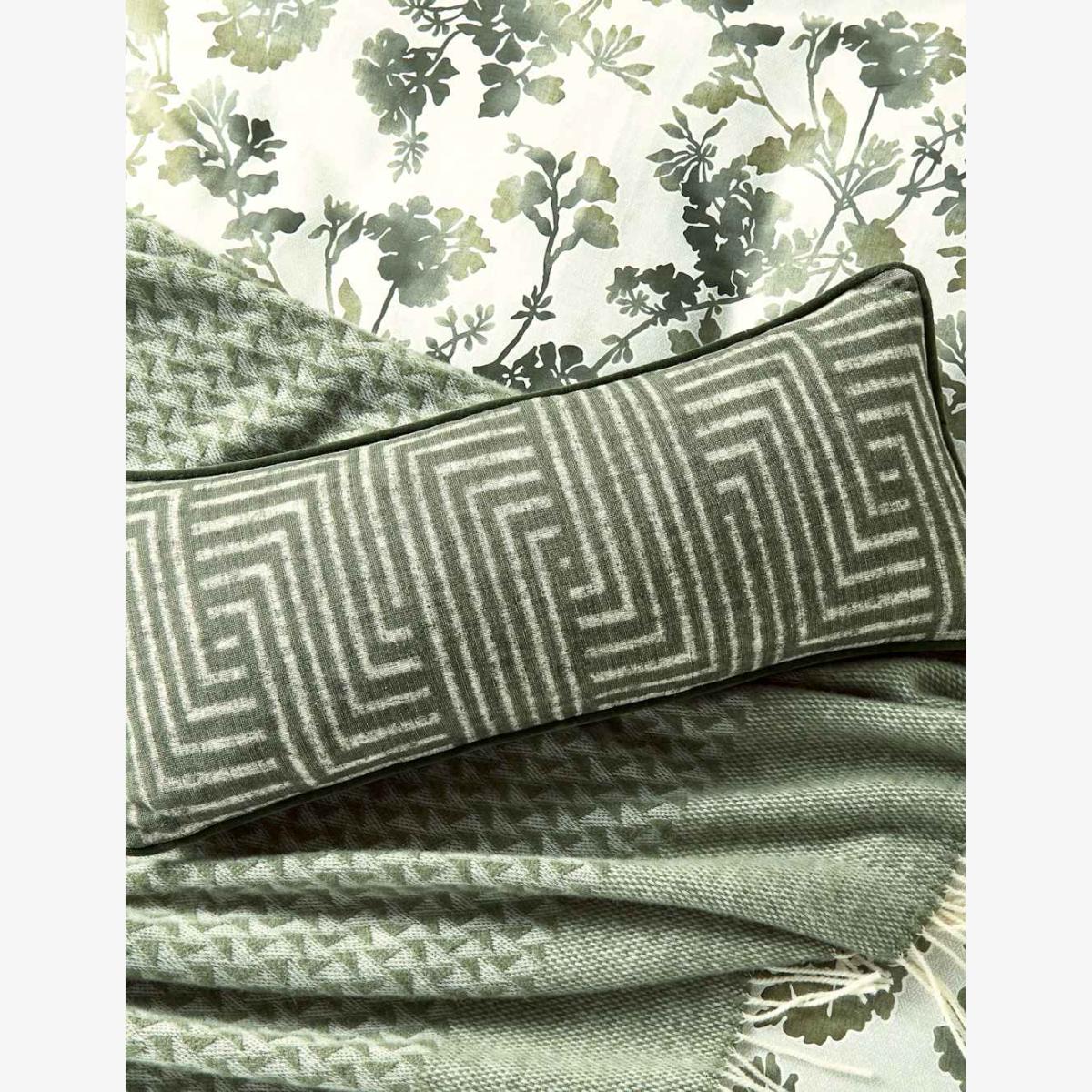 This green throw is a versatile piece that can add a touch of contemporary elegance to both modern and classic interiors. I love its geometric pattern paired with the rich wool fabric, which offers both texture and visual interest. It works particularly well in living rooms with neutral palettes, serving as a statement accent that also provides warmth and comfort. For styling tips, drape it casually over the back of a sofa for a relaxed look, or fold neatly on a bed or armchair to bring a pop of colour. Given its substantial size, it’s perfect for layering - pair it with lighter throws for a cosy, layered bed or sofa arrangement. It’s an easy way to introduce pattern and a cosy feel without overwhelming your existing decor.