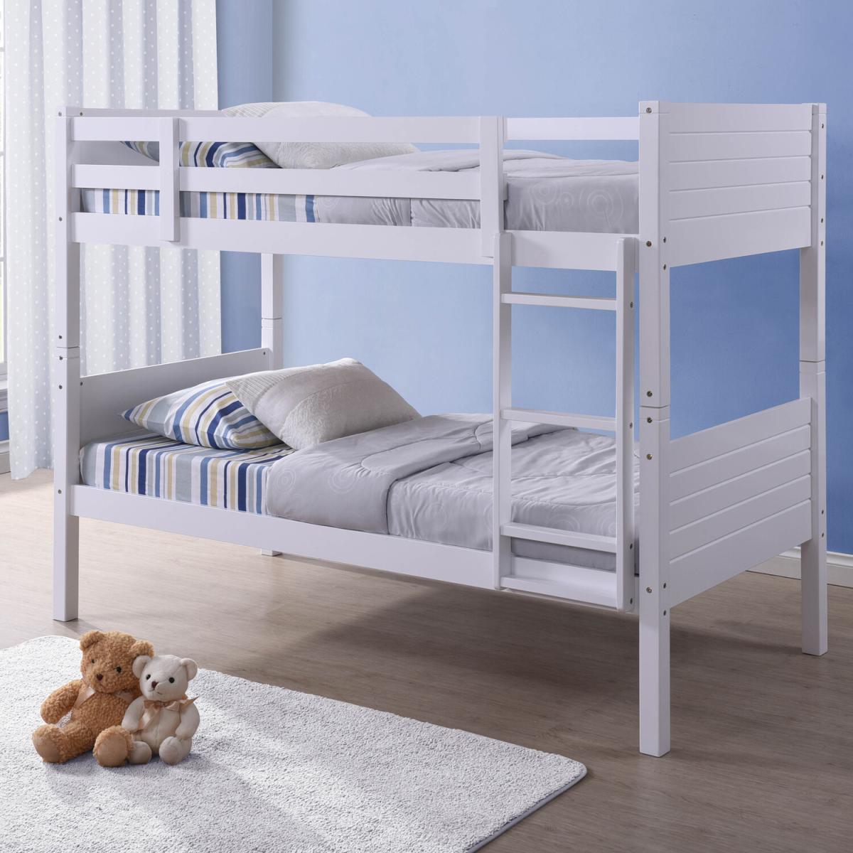 Classic style meets modern function with the Bedford Bunk Bed! This sturdy white bunk features a safe ladder and converts to twin beds for growing kids. Crafted for durability, it boasts a hidden storage space beneath and a supportive slatted base for a comfortable night's sleep. Easy assembly ensures quick setup. Perfect for creating a playful and functional space for your children!