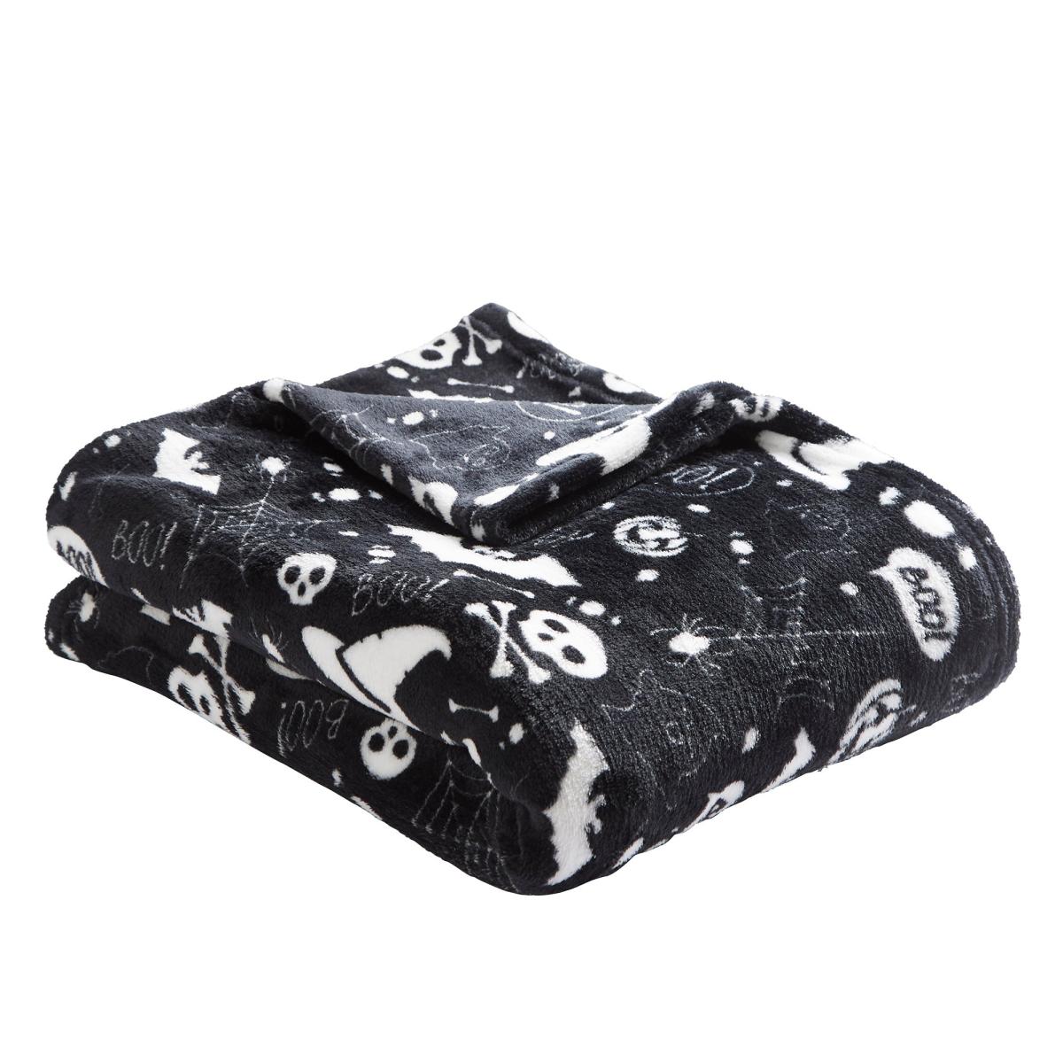 Bedlam Boo Fleece Throw 120cm x 150cm Black