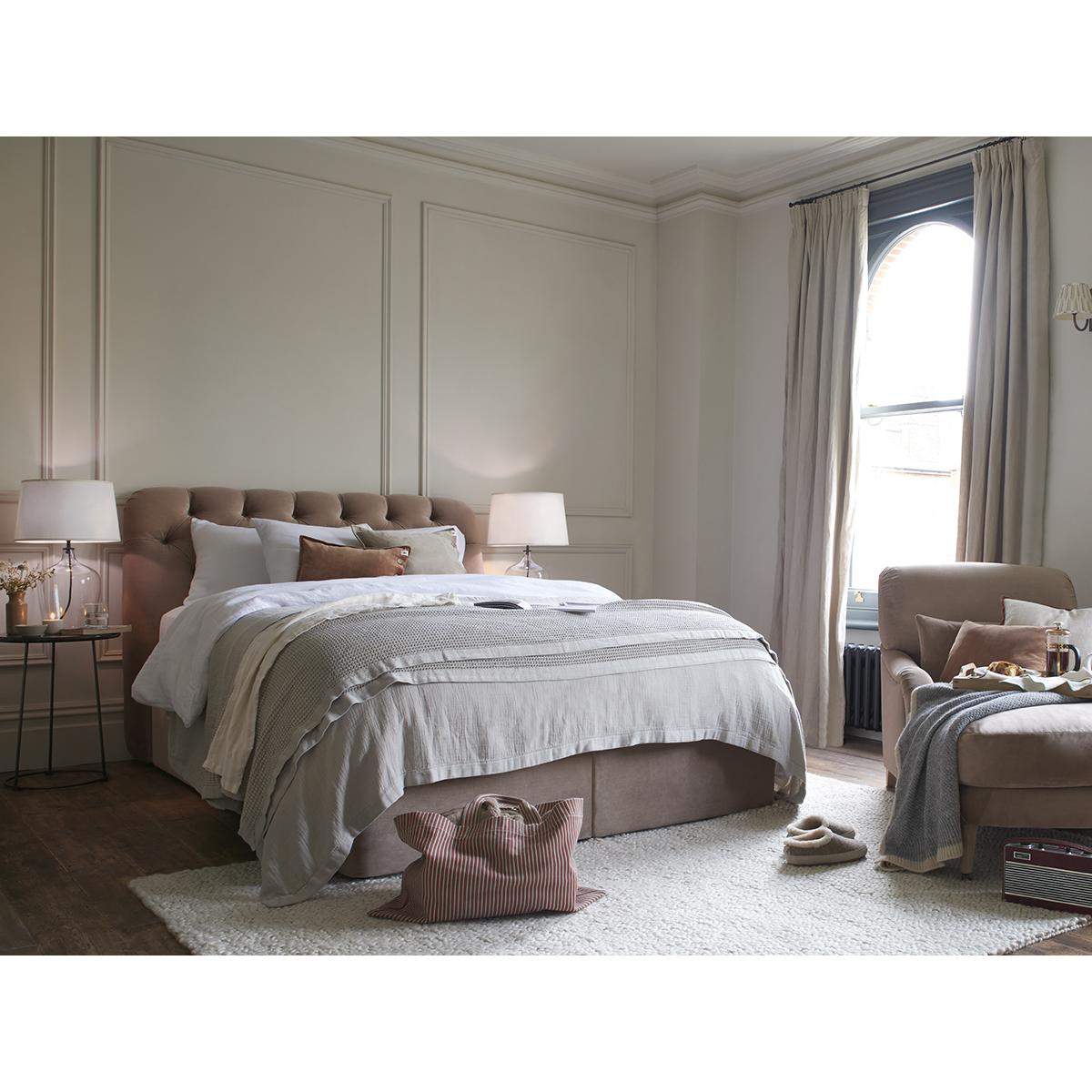I love the Bedlington headboard for its clean lines and understated elegance, making it a versatile focal point in many interiors. Its neutral tone and classic tufted design lend it well to both contemporary and traditional bedrooms. It works particularly well in cosy, minimalist spaces when styled with soft, layered bedding and subtle accents, or in more eclectic schemes with bold textiles and accessories. Practical styling tips include pairing it with textured throws or colourful cushions to add personality without overwhelming its understated charm. This piece is a great choice for creating a polished look that remains welcoming and adaptable to changing décor styles.