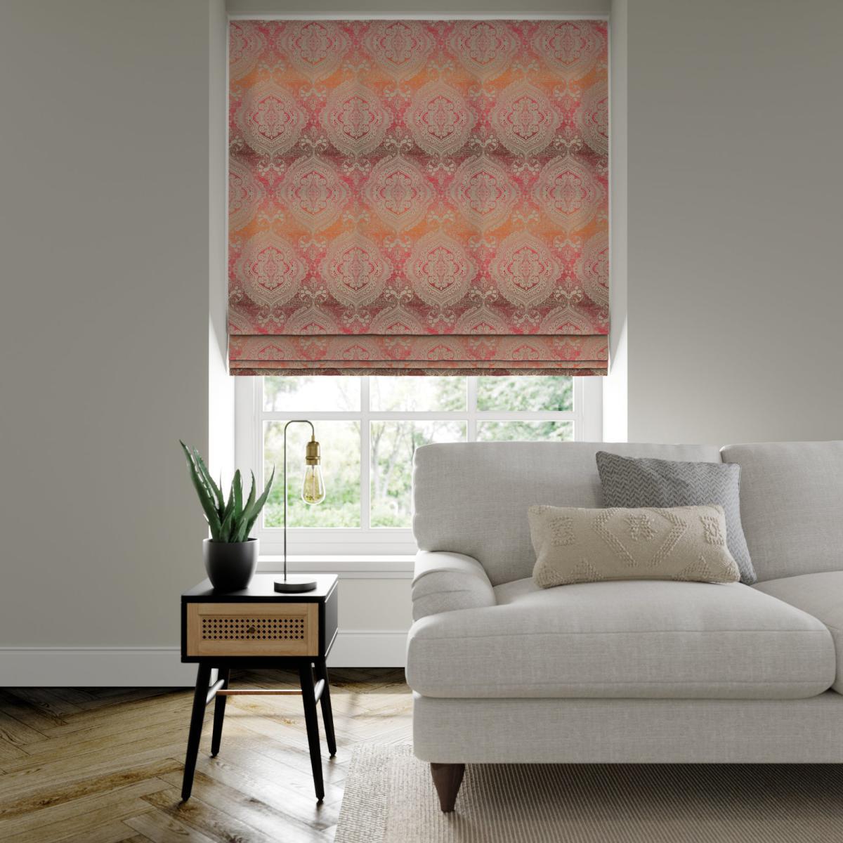I love the Bedouin made to measure roman blind in fuchsia for its vibrant colour and elegant texture. It adds a pop of colour and a sense of richness to both traditional and contemporary interiors. This blind works particularly well in living rooms or bedrooms where colour injection can create a warm, inviting atmosphere. For styling, consider pairing it with neutral walls to let the colour stand out, or with complementary warm tones like terracotta or blush for a cohesive look. Practical tips include ensuring it’s correctly measured for a snug fit and pairing it with simple curtain rails or trims to keep the focus on the fabric's pattern and hue. Overall, it's a statement piece that combines functionality with a punch of colour.