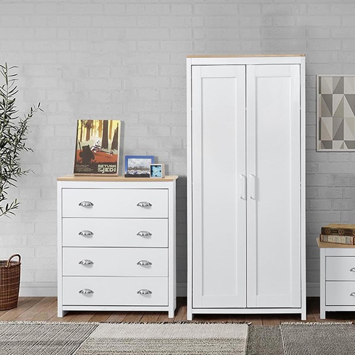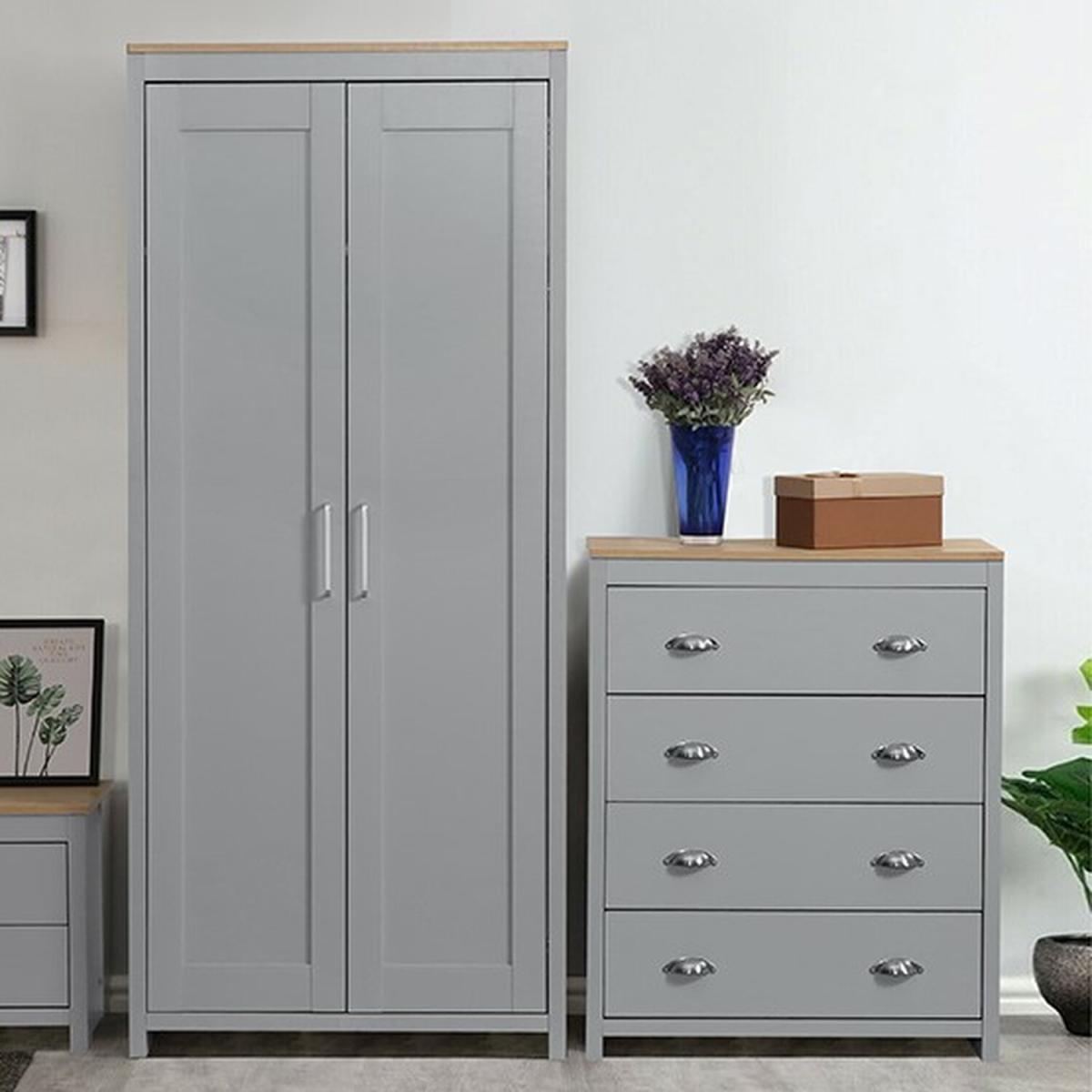 Bedroom 4 Drawer Chest in Grey or White with Caramel Bar - Grey