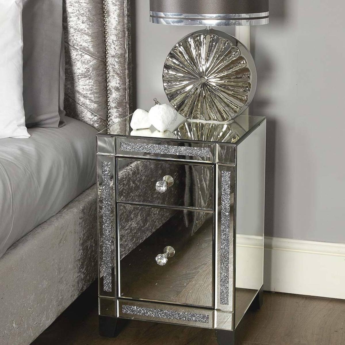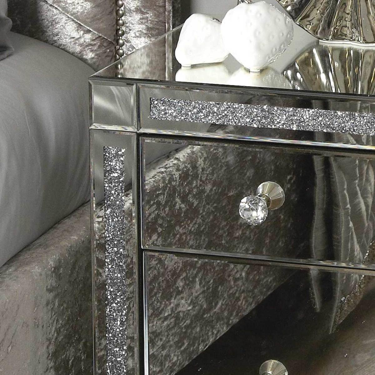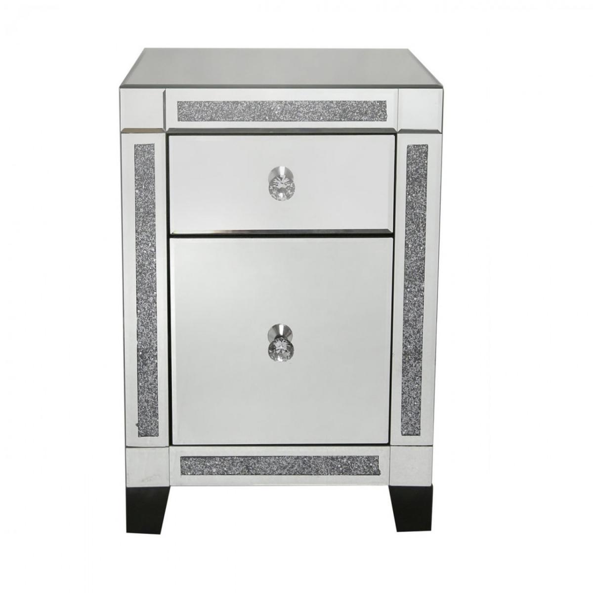 Bedside Cabinet - Fabiana 2 Drawer Silver Mirrored Bedside Table - Silver