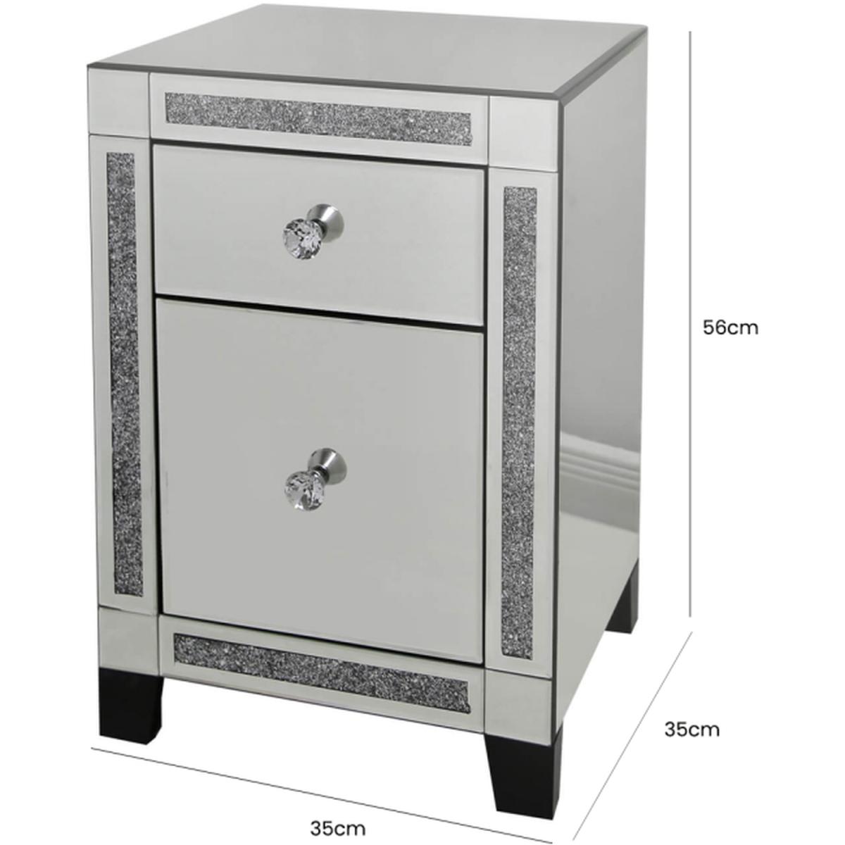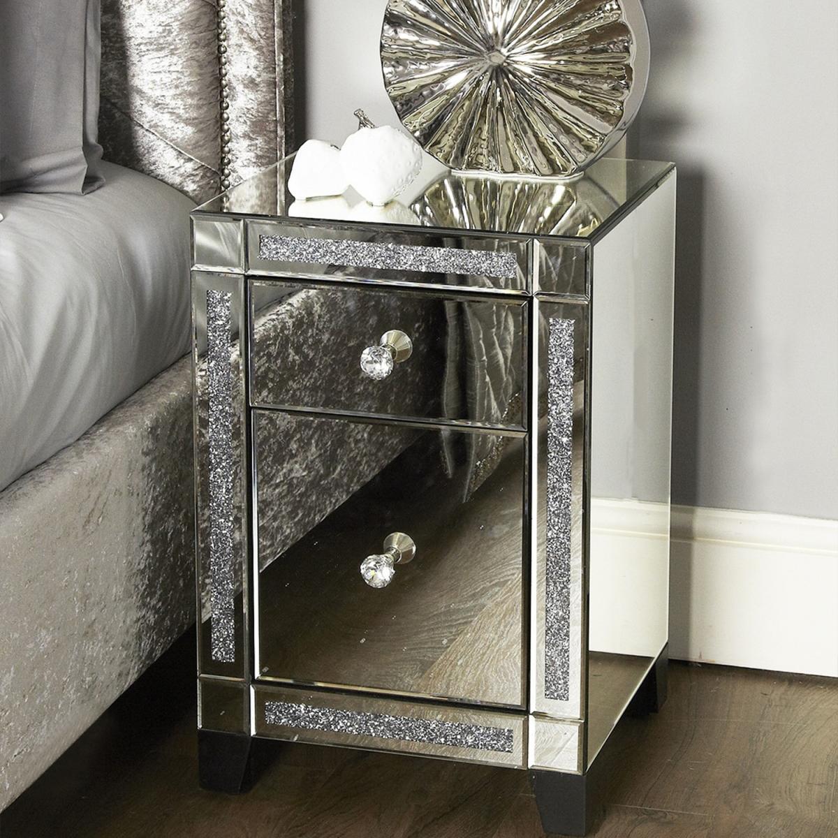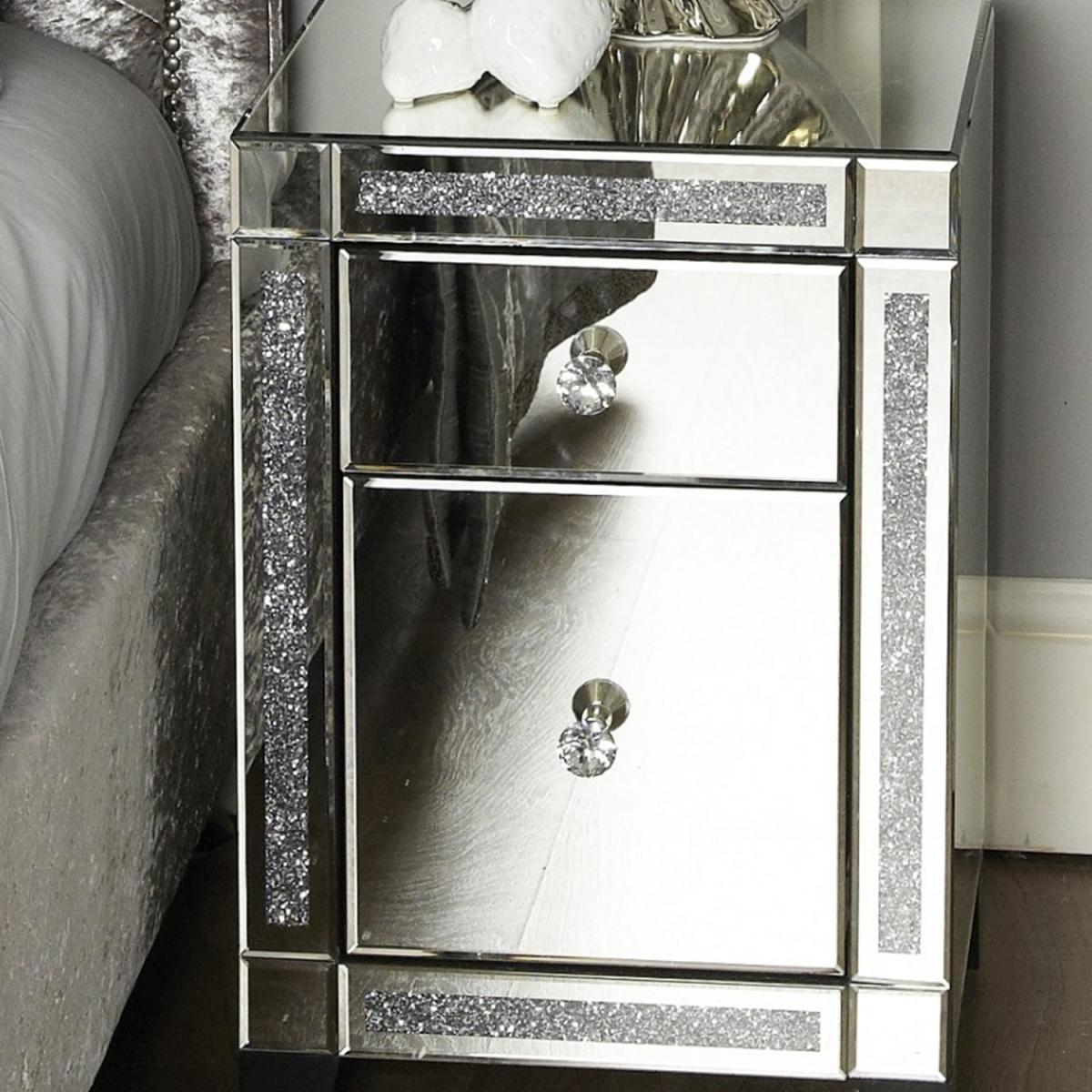Bedside Cabinet - Fabiana 2 Drawer Silver Mirrored Bedside Table - Silver