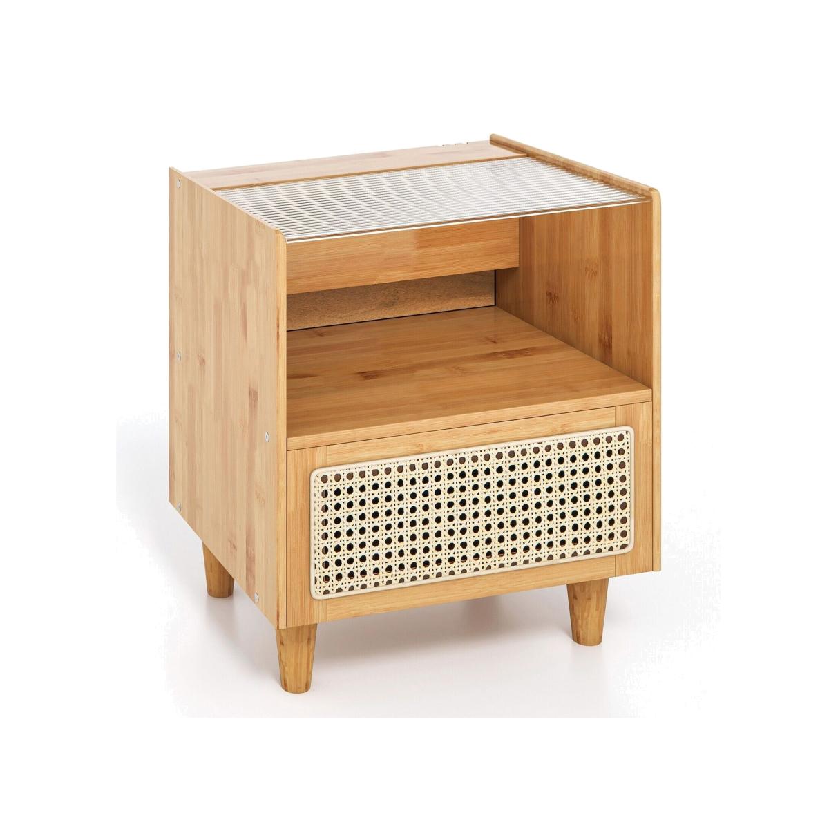Bedside Table Bamboo Rattan Sofa Side Table - Brown