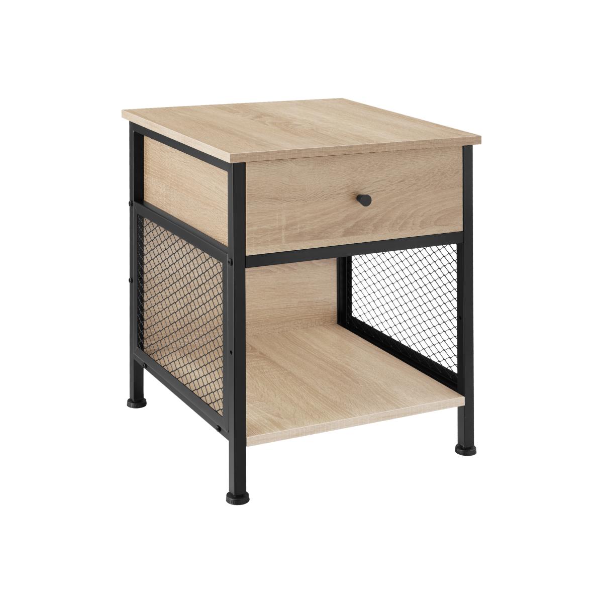 The bedside table Killarney from tectake is a classic bedside table, suitable for any bedroom in your home. It offers great organizational options with its spacious top-shelf, drawer, and open storage compartment. Store your bedroom accessories away from view in the large drawer and get more space for your belongings. With its tasteful design, and lattice surfaces, it fits seamlessly into any decor without making a bold statement. The wood-grained effect surfaces amp powder-coated steel frame gives it durability and add to its inviting appearance. This new product is a great addition to any bedroom, and is a perfect gift for a new baby room.