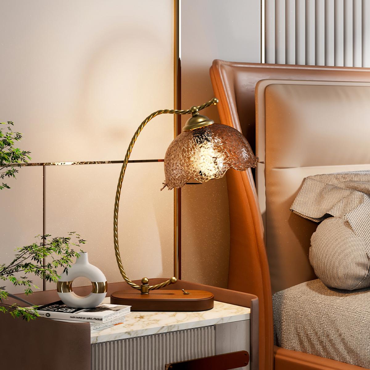 Bedside Table Lamp with Glass Shade - Brown and Gold