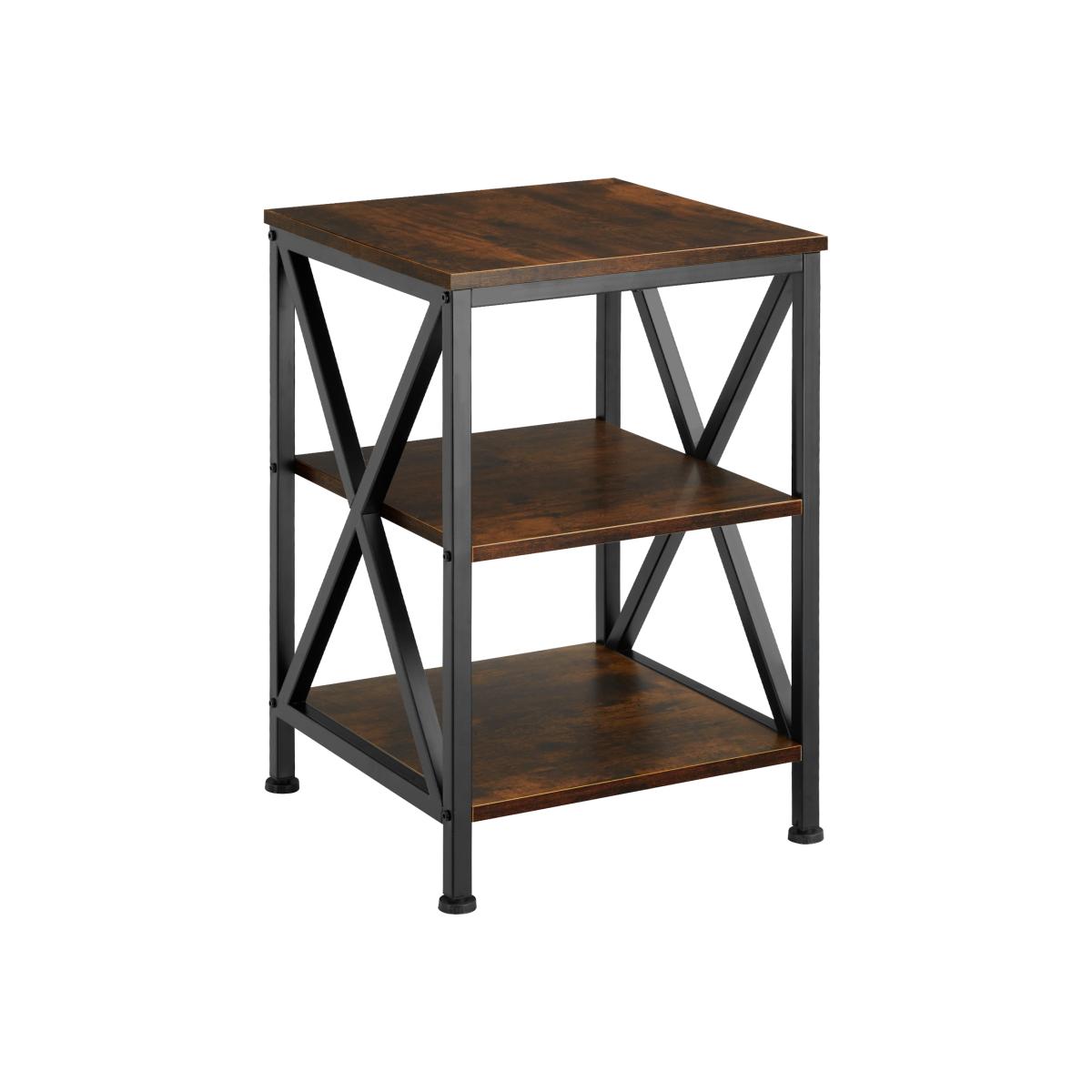 I love the Nottingham side table for its bold industrial look, which makes it a great accent piece in both modern and rustic interiors. The dark, rugged finish works well in spaces with exposed brick, metal accents, or warm wood tones, adding an urban edge without feeling cold. It’s practical too, with two shelves providing ample storage for essentials like books or lamps. To style it effectively, I recommend pairing it with matte black or brass lamps and minimal accessories to keep the look streamlined. It’s versatile enough to work as a bedside table, or even as a side piece in living rooms or hallways, bringing an industrial vibe with maximum functionality.