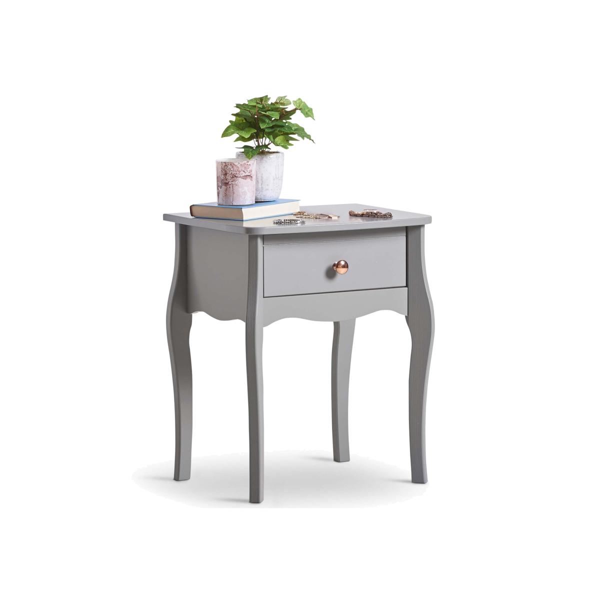 The curvaceous flourishes of vintage European design meet the minimalist, utility focused style of Nordic furniture in this sleek bedside table. With its neutral colour finish, light framework contouring and sparkling rose gold handles, its perfect for adding a gentle touch of classical flair to any bedroom. Easy to access bedside storage. With a spacious drawer mounted on smooth gliding metal runners, you will have easy to access space to store whichever belongings you need to start or end the day with. Quality is just as important as appearance, which is why this nightstand is manufactured with care using robust, high grade materials. From the MDF wood frame to the stainless steel handles, every element of this side table is made to stand the test of time.