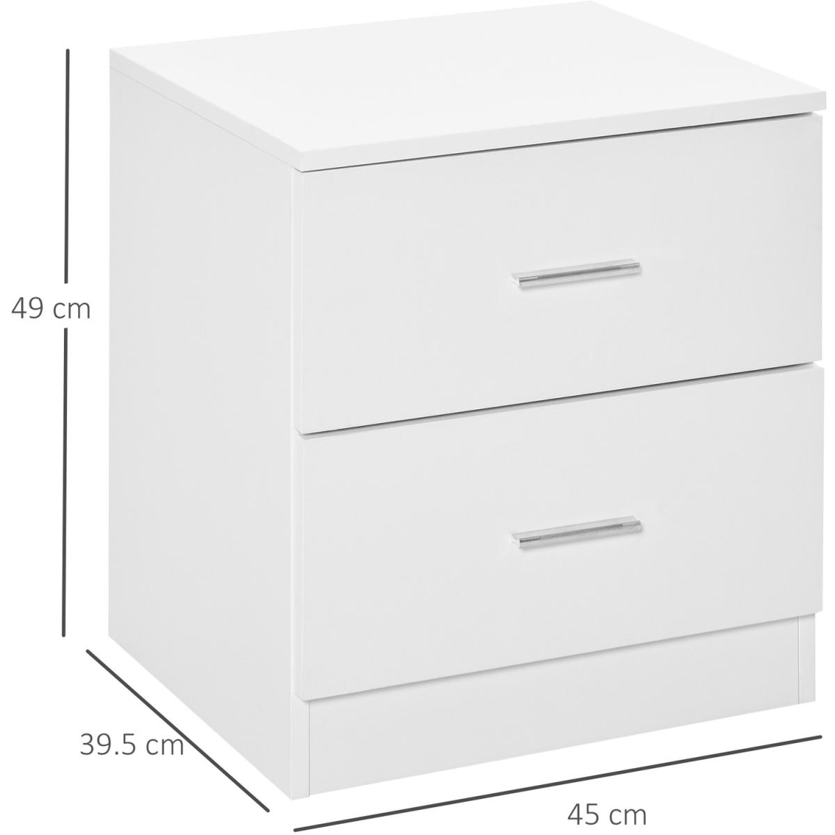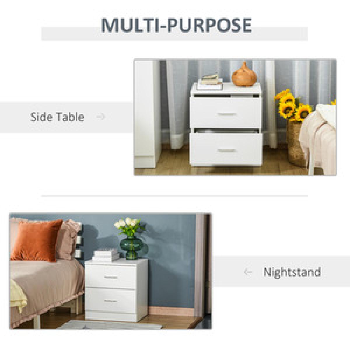 Bedside Table with 2 Drawers Storage Unit - White