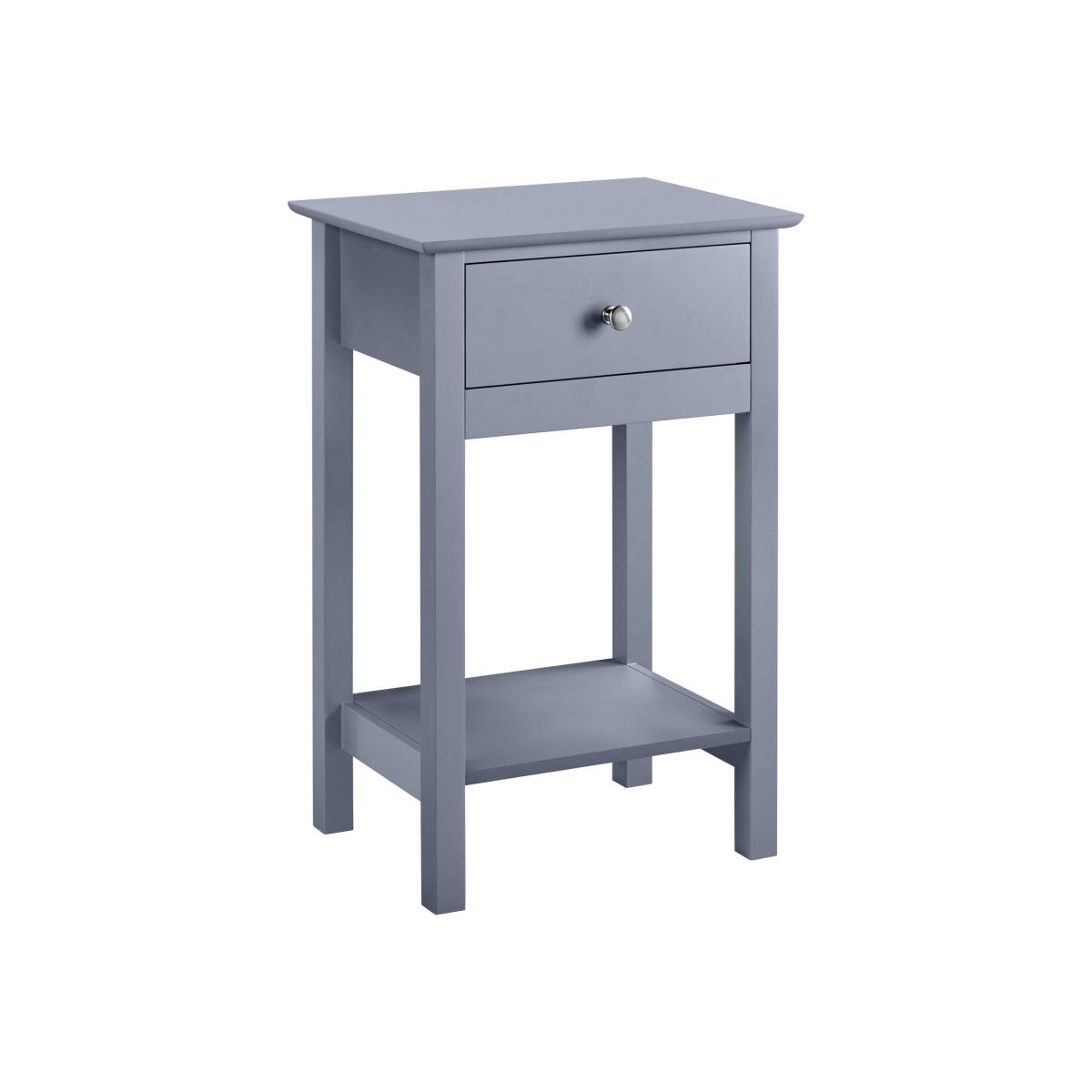 I love this grey bedside table for its clean lines and versatile colour, which slot seamlessly into Scandi, coastal or contemporary schemes. The single drawer is ideal for stashing chargers and small essentials, while the lower shelf can display books or a woven basket for extra storage. For styling, top it with a slim table lamp and a small tray to keep your everyday bits organised, then add a touch of greenery or a candle to soften the look. Its compact footprint also makes it a great option in smaller bedrooms or as a neat side table in a living area.