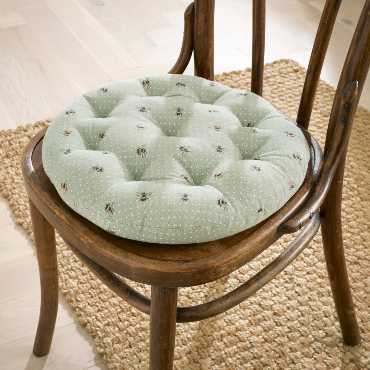 * Round design* Made from an 85% cotton and 15% linen blend* Ideal for kitchen or dining chairs. Add a buzz of charm to your seating area with our Bee Round Seat Pad. This beautifully printed design features delicate ornate bees, bringing the wonder and whimsy of nature to your home. Made from soft blend of 85% cotton and 15% linen, it offers a relaxed feel whilst the 100% polyester filling provides all day comfort. The calming colourway complements any décor, creating a tranquil, stylish atmosphere. Perfect for adding a stunning flourish to kitchen or dining chairs, this round seat pad is a lovely finishing touch to any space.